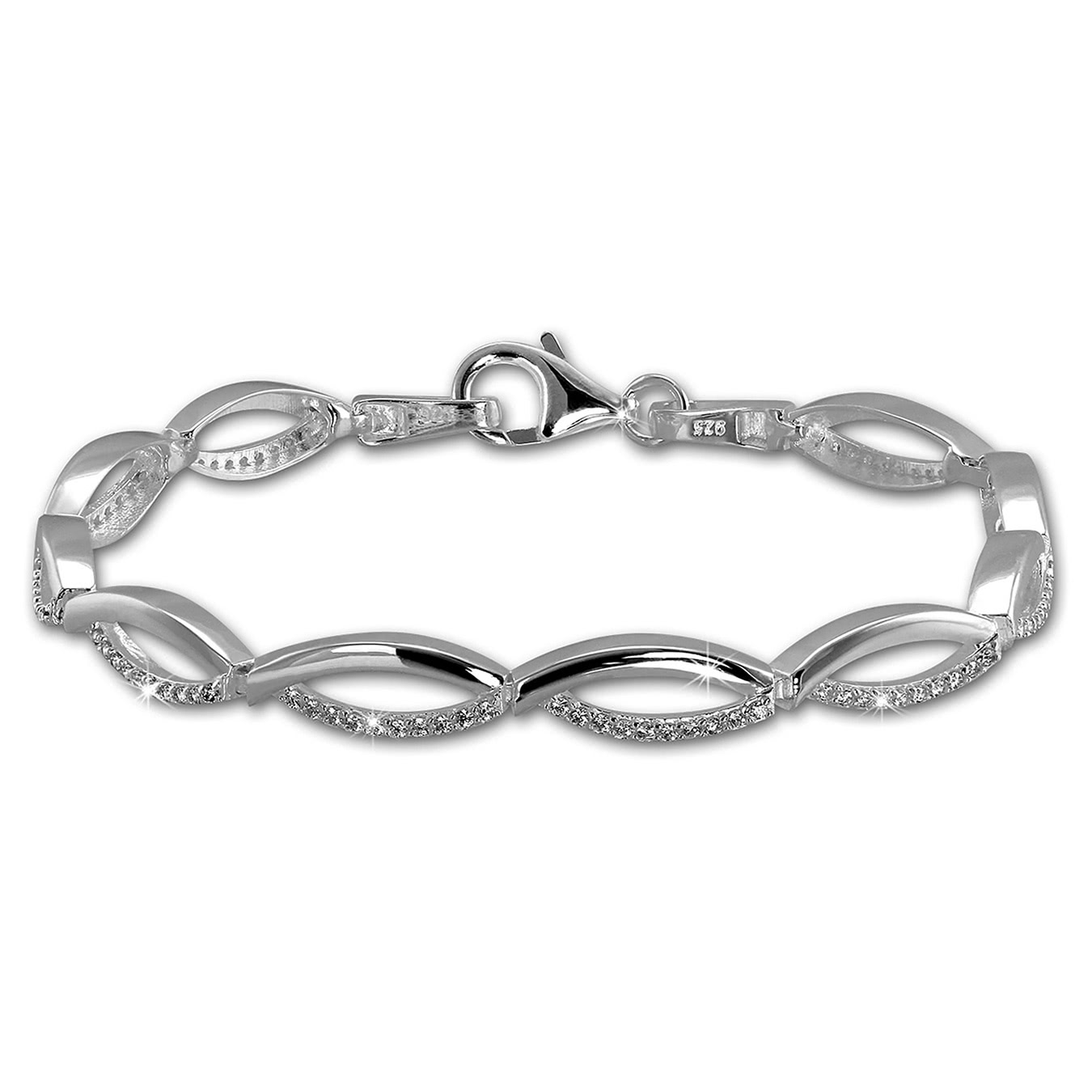 SilberDream Damen Armband Oval 925er Echt Silber Armschmuck 18,5cm weiß SDA460W