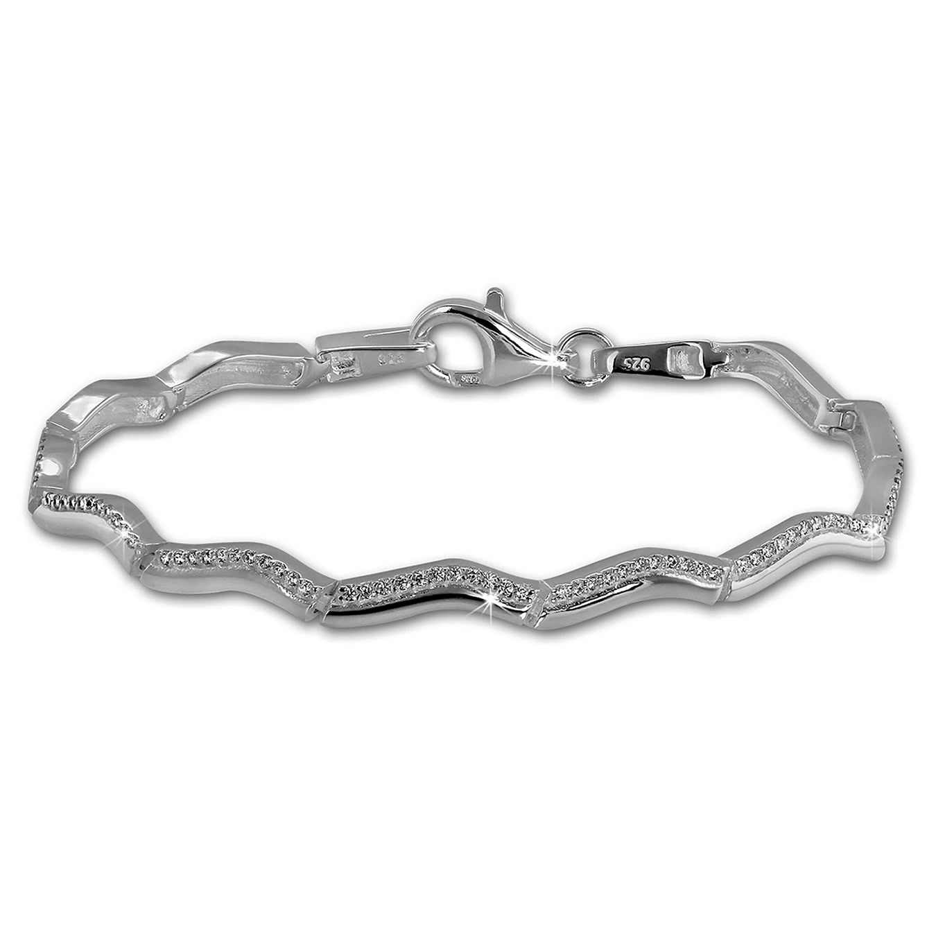SilberDream Damen Armband Welle 925er Echt Silber Armschmuck 18,5cm weiß SDA461W
