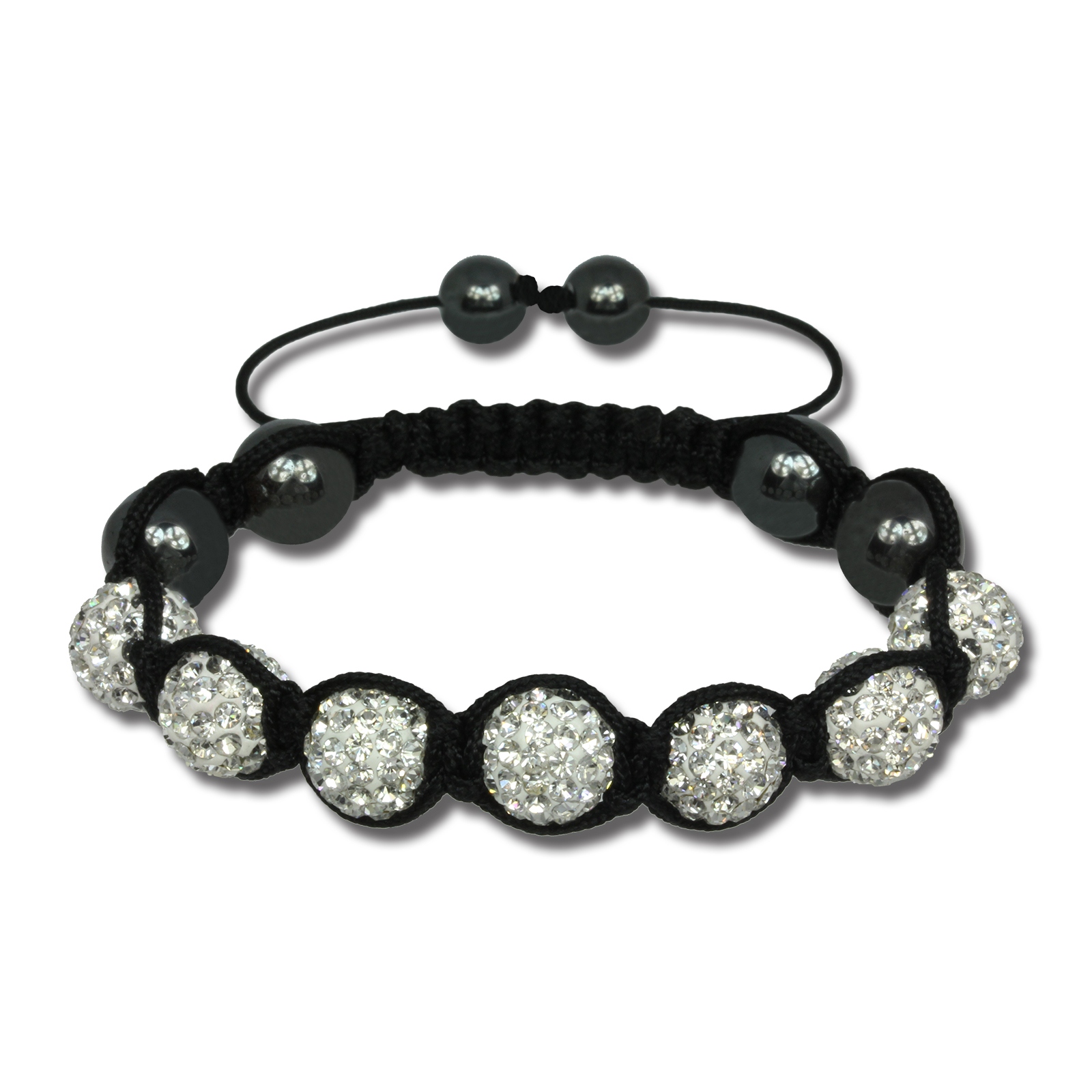 SilberDream Damen Shamballa Armband weiß 18-23cm 7 Kugeln Zirkonia SDA923