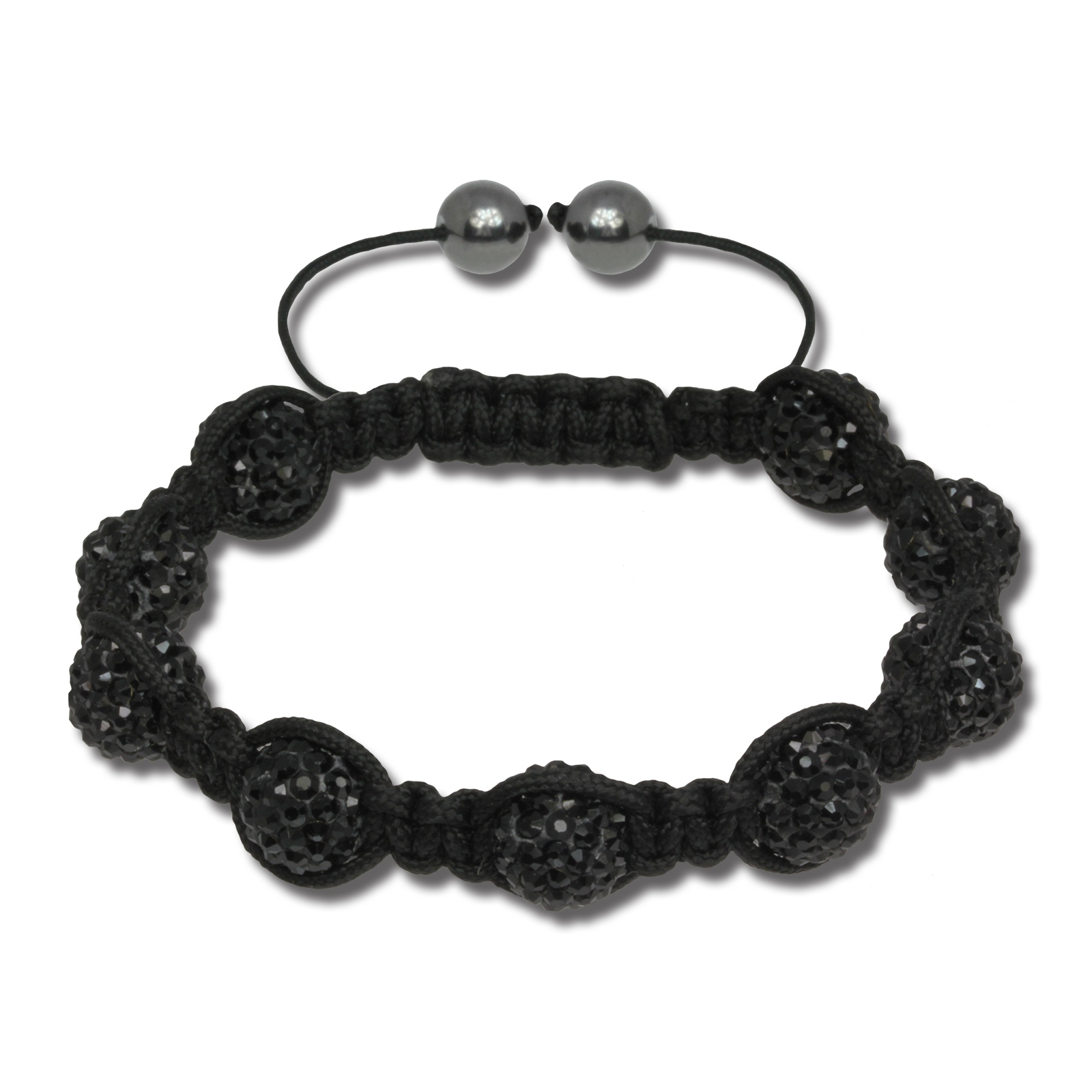 SilberDream Damen Shamballa Armband schwarz 18-23cm 9 Kugeln Zirkonia SDA924