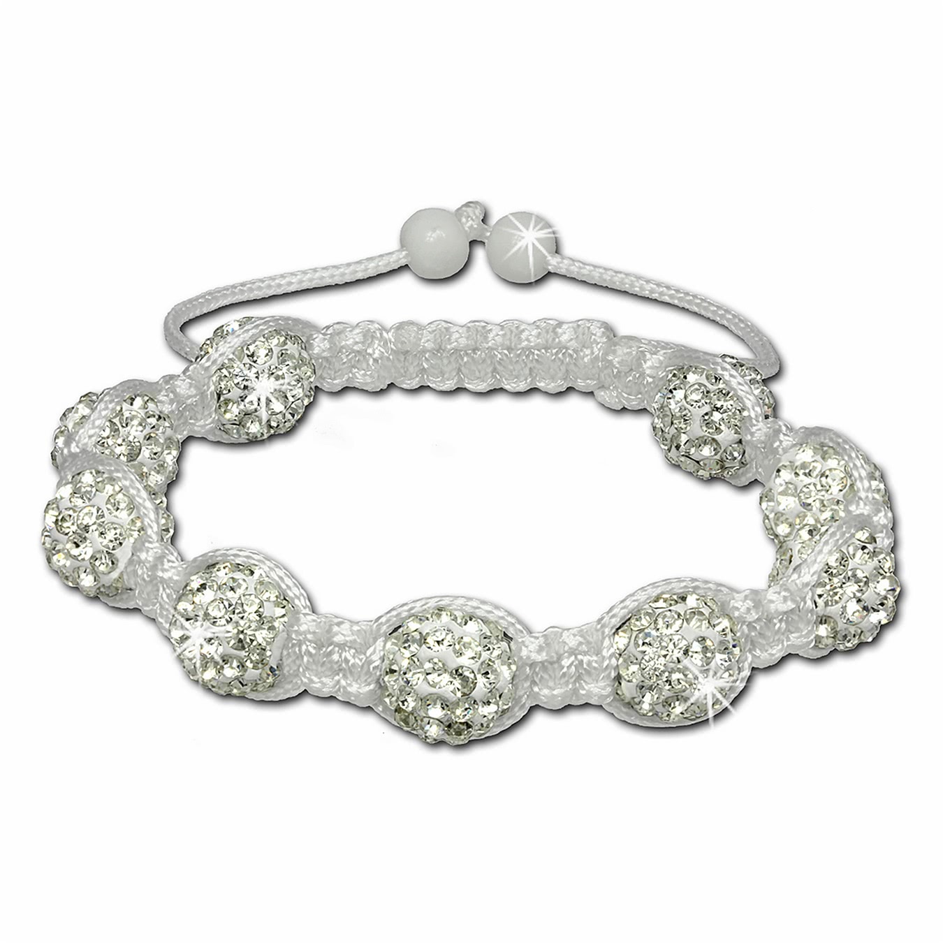 SilberDream Damen Shamballa Armband weiß 18-23cm 9 Kugeln Zirkonia SDA930