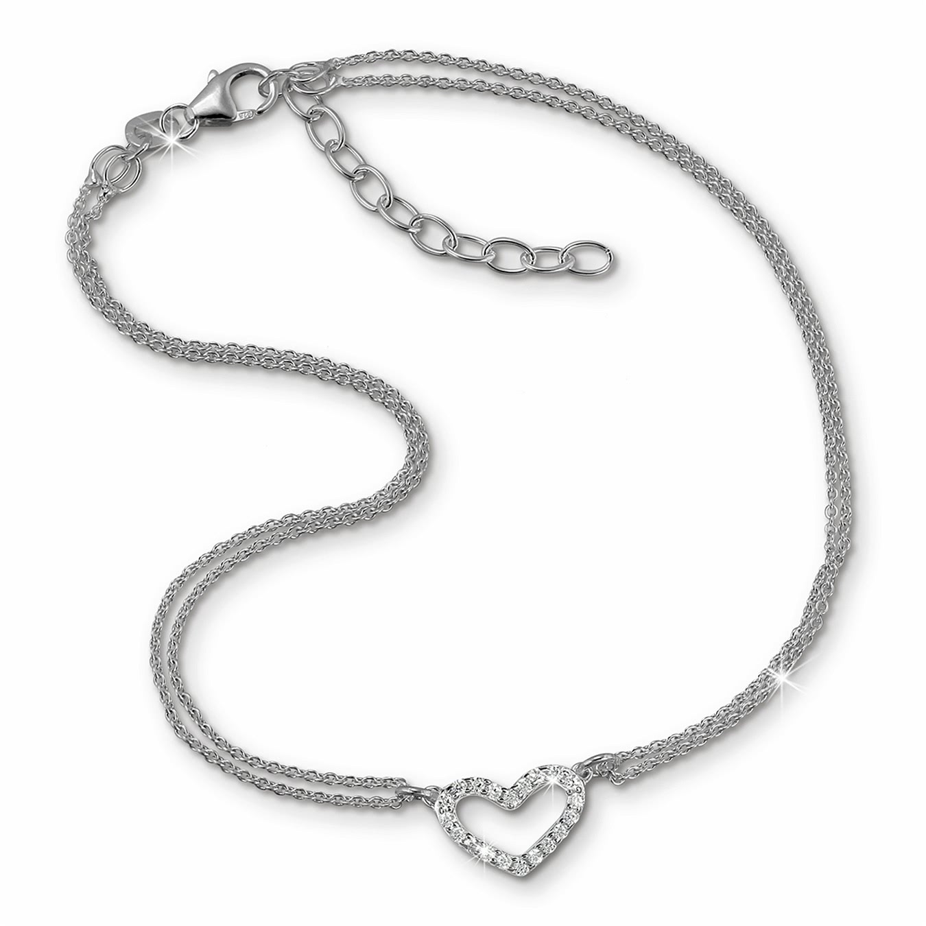 SilberDream Damen Fußkette weiß 27cm Herz Zirkonia 925 Sterling Silber SDF0383J