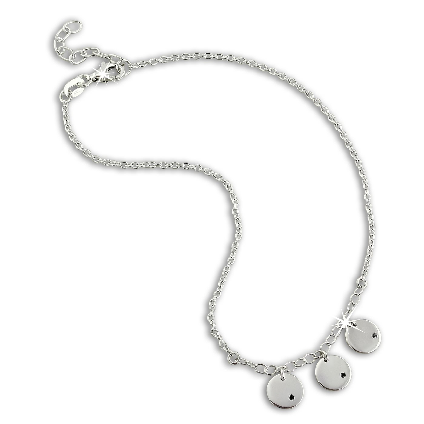 SilberDream Fußkette Damen 25cm Plättchen 925 Silber Zirkonia schwarz SDF5115J