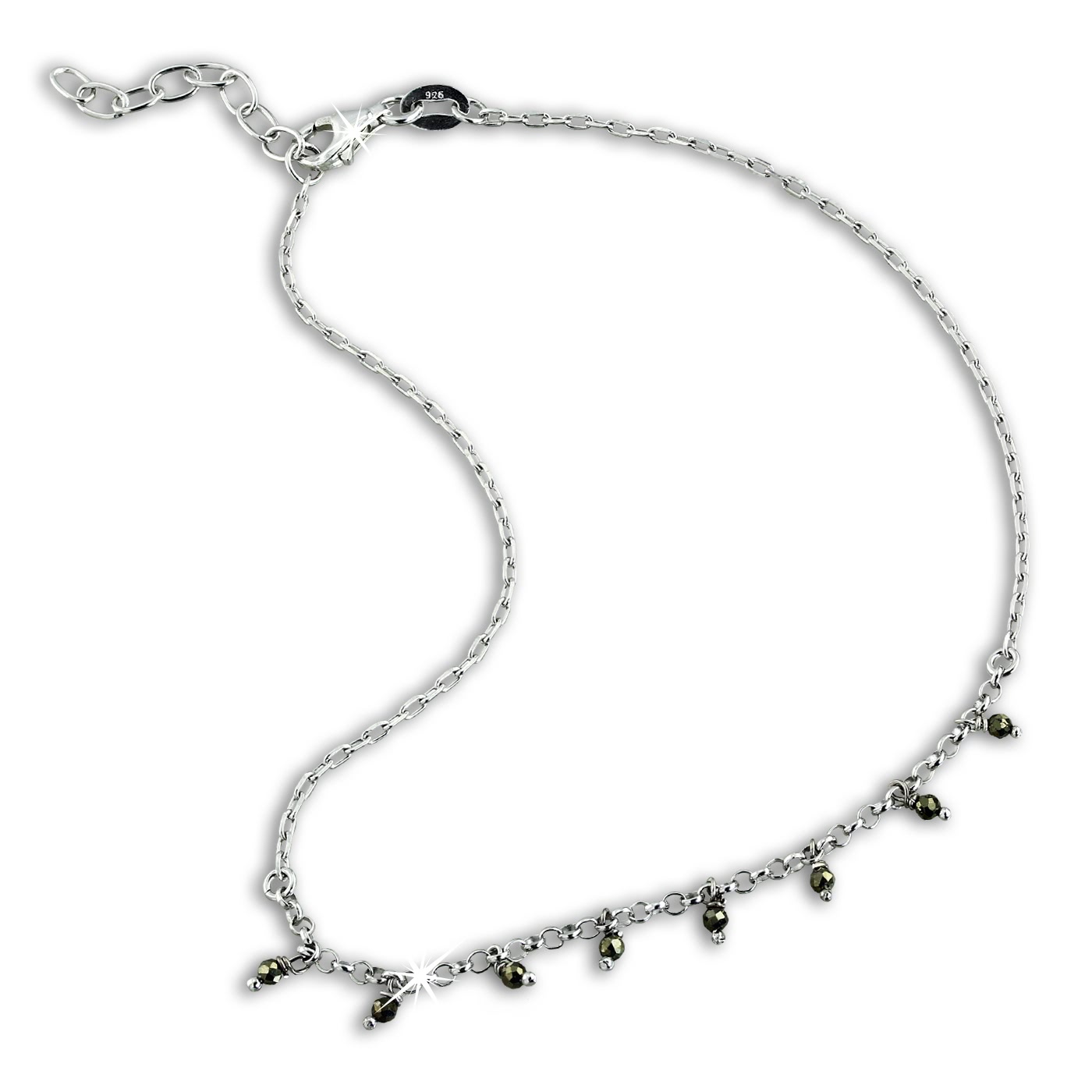 SilberDream Fußkette Damen 25cm Kugeln 925 Silber Pyrit grau silber SDF5135K