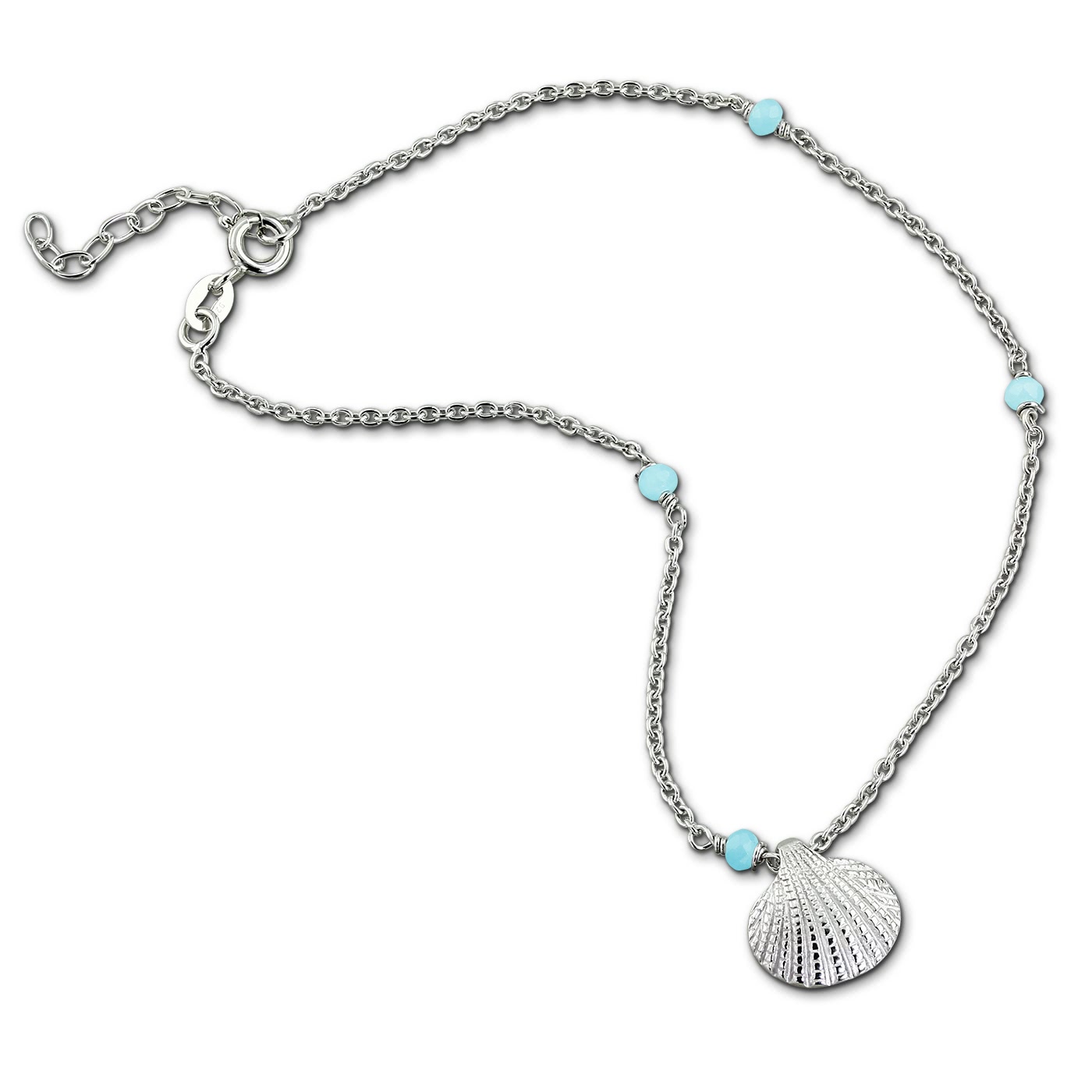 SilberDream Fußkette Damen 25cm Muschel 925 Silber Acrylperle hellblau SDF5245H