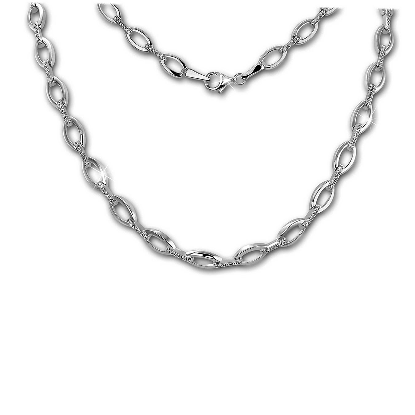 SilberDream Damen Halskette oval 925er Sterling Silber Halsschmuck weiß SDK449W