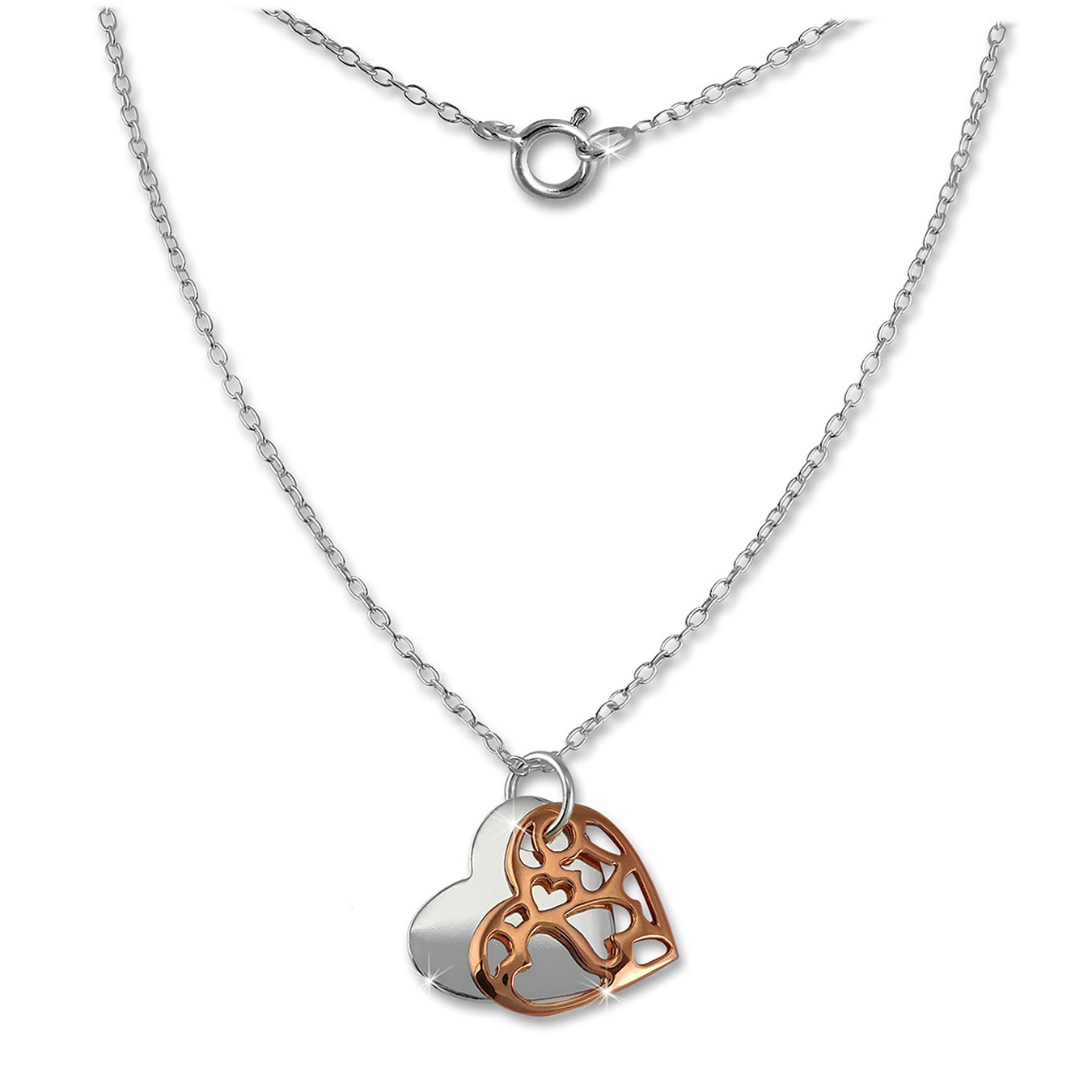 Das Produkt besteht aus 925er Sterling Silber, 14 Karat 585 Rosegold, 925er Sterling Silber, 14 Karat 585 Rosegold, 925er Sterling Silber und 14 Karat 585 Rosegold (925 Sterling Silber und vergoldet (Rosegold 585)).