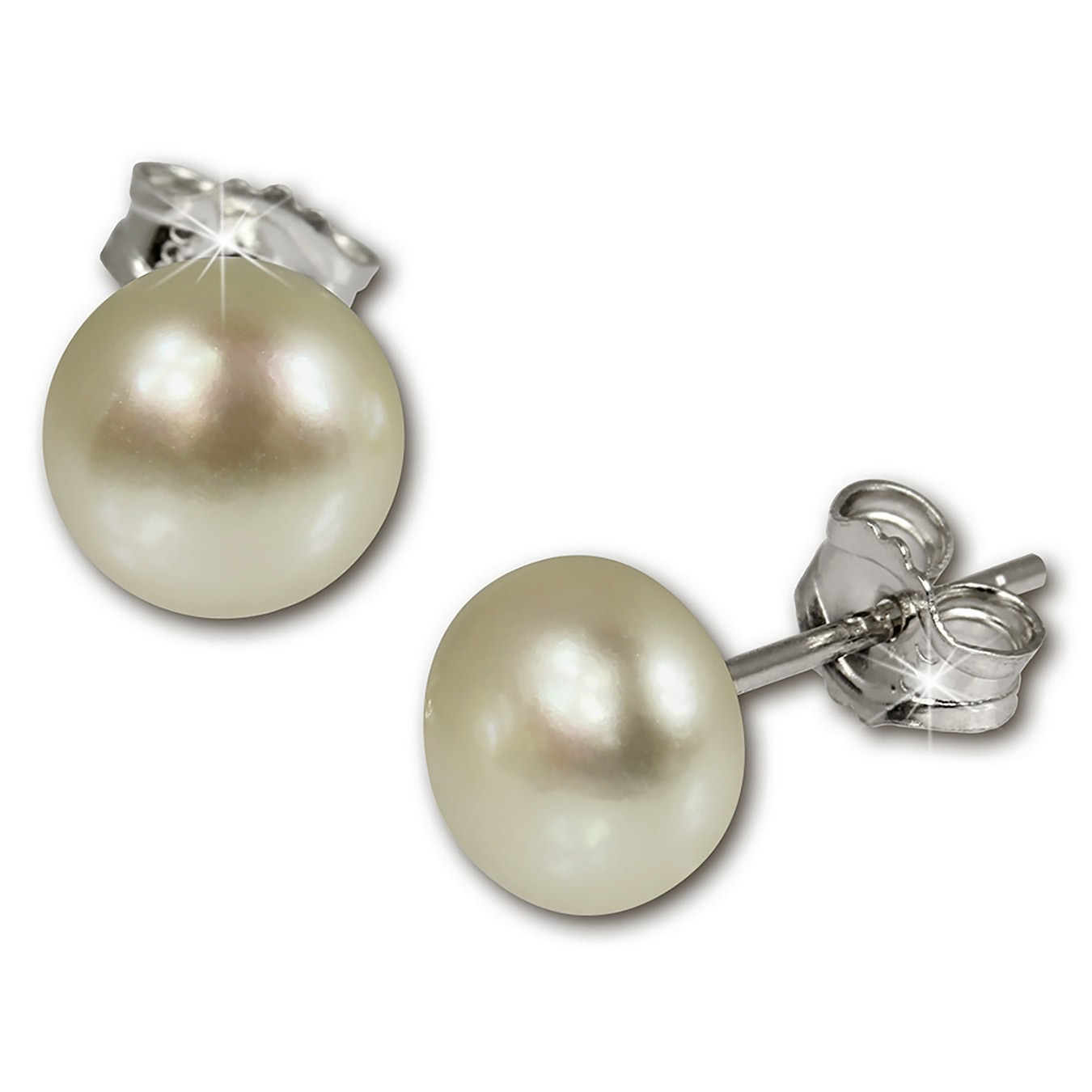 SilberDream Damen Ohrringe weiß 7,5mm Ohrstecker Perle 925 Echt Silber SDO108W