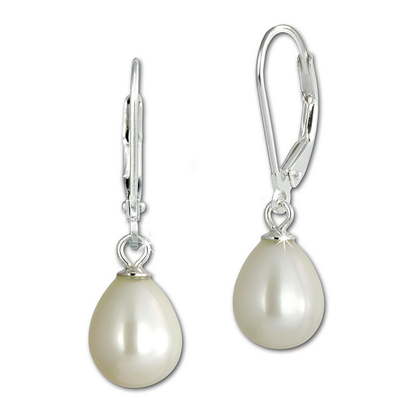 SilberDream Damen Ohrringe weiß 8mm Ohrhänger Perle 925er Echt Silber SDO168W