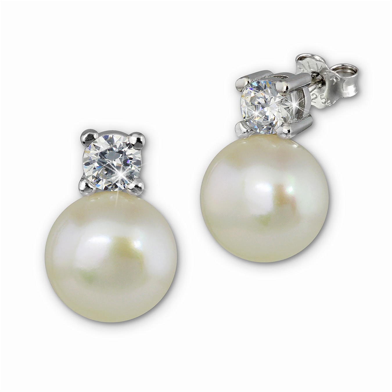 SilberDream Damen Ohrstecker weiß Süßwasser-Zuchtperle Qualität AA Zirkonia 925 Silber Ohrringe SDO1738W