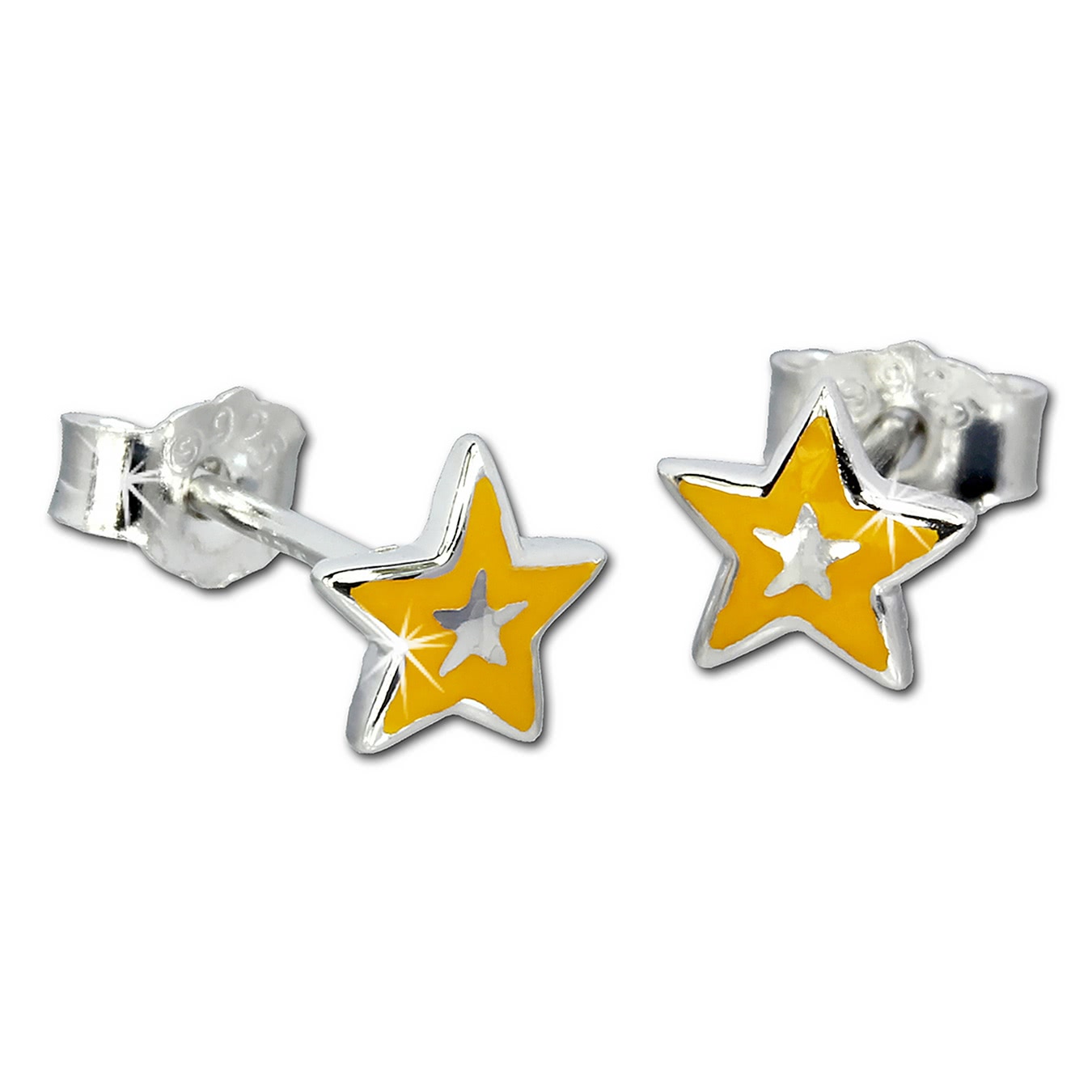 Teenie-Weenie Kinder Ohrringe gelb 6mm Ohrstecker Stern 925er Silber SDO200Y