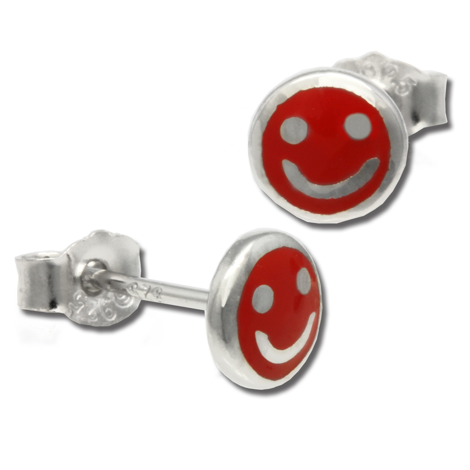 Teenie-Weenie Kinder Ohrringe rot 6mm Ohrstecker Smiley 925er Silber SDO208R