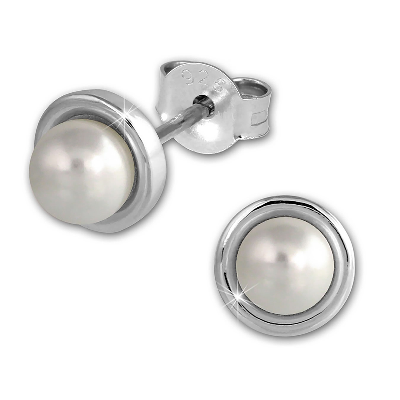 SilberDream Damen Ohrringe weiß Ohrstecker Süßwasser Perle 925 Silber SDO2508