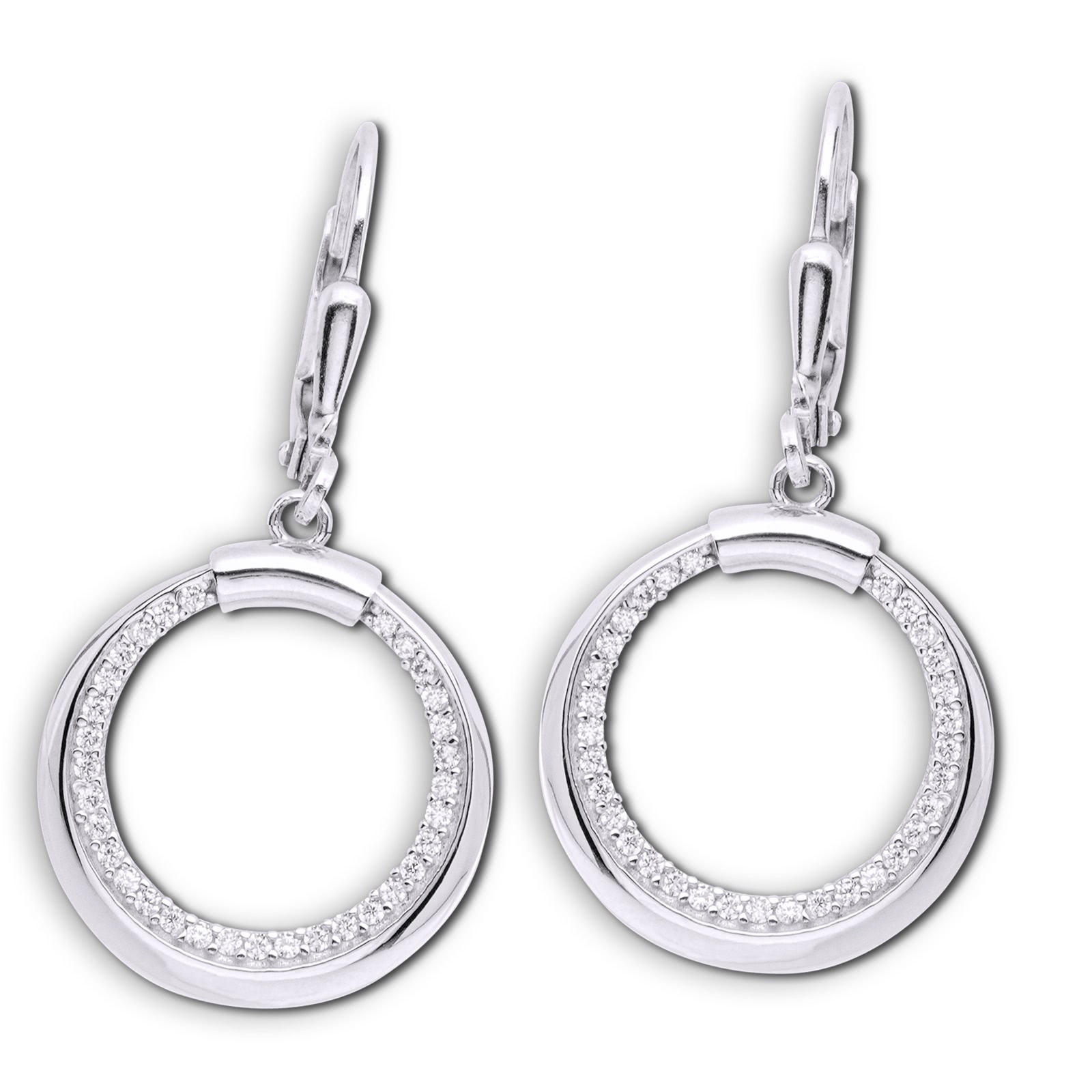 SilberDream Damen Ohrhänger weiß Round Zirkonia 925 Silber Ohrringe SDO4392W