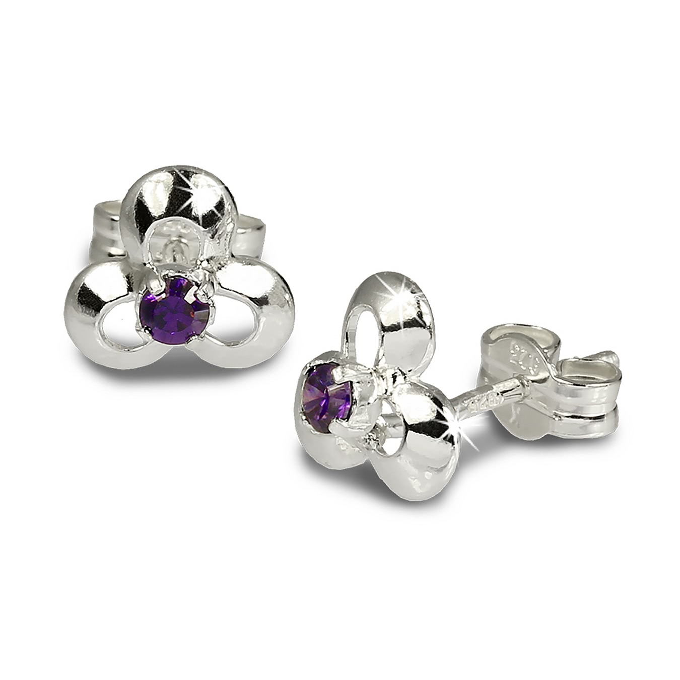 SilberDream Damen Ohrringe lila 7mm Ohrstecker Blüte Zirkonia Silber SDO529V