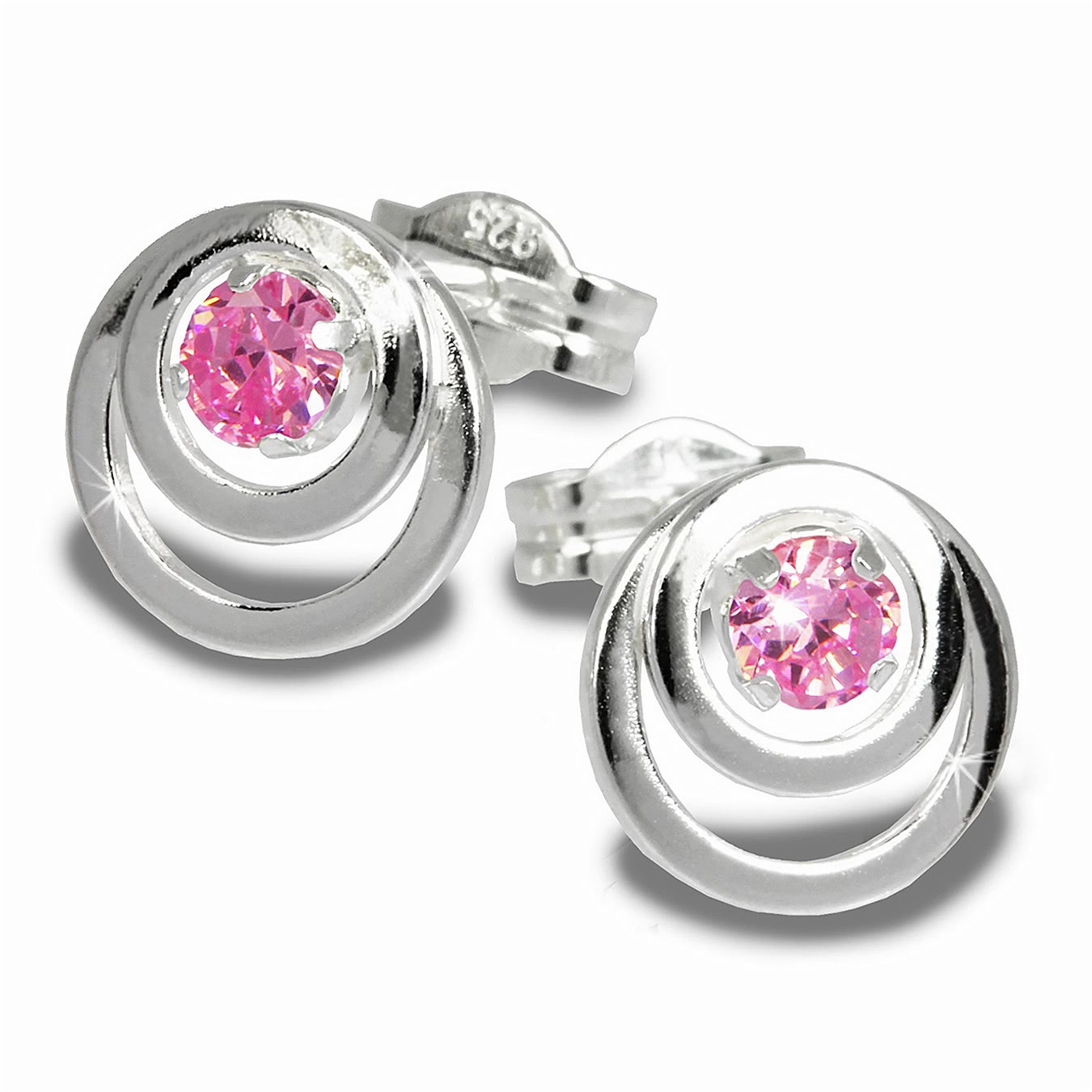 SilberDream Damen Ohrringe rosa 8mm Ohrstecker Kreise Zirkonia Silber SDO542A