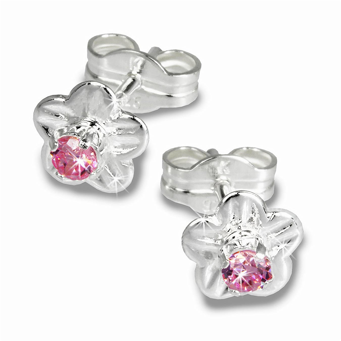 SilberDream Damen Ohrringe rosa 6mm Ohrstecker Blume Zirkonia Silber SDO543A