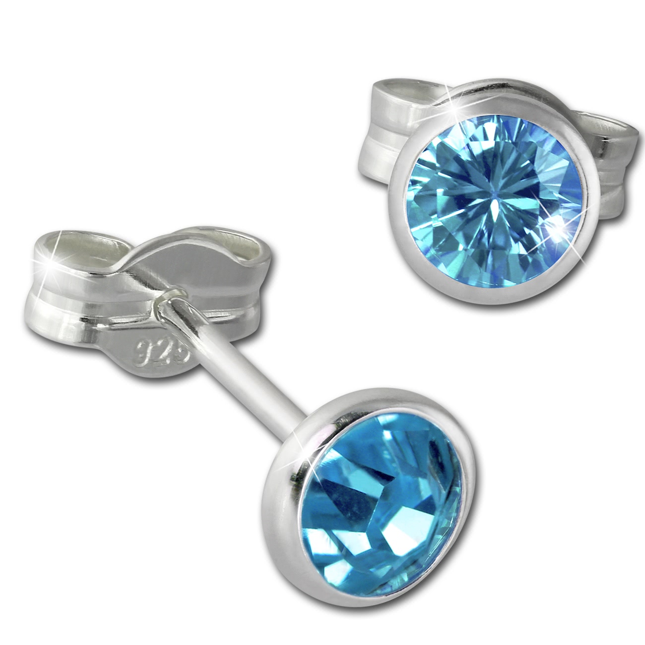 SilberDream Damen Ohrringe hellblau 4mm Ohrstecker Zirkonia 925 Silber SDO5534H