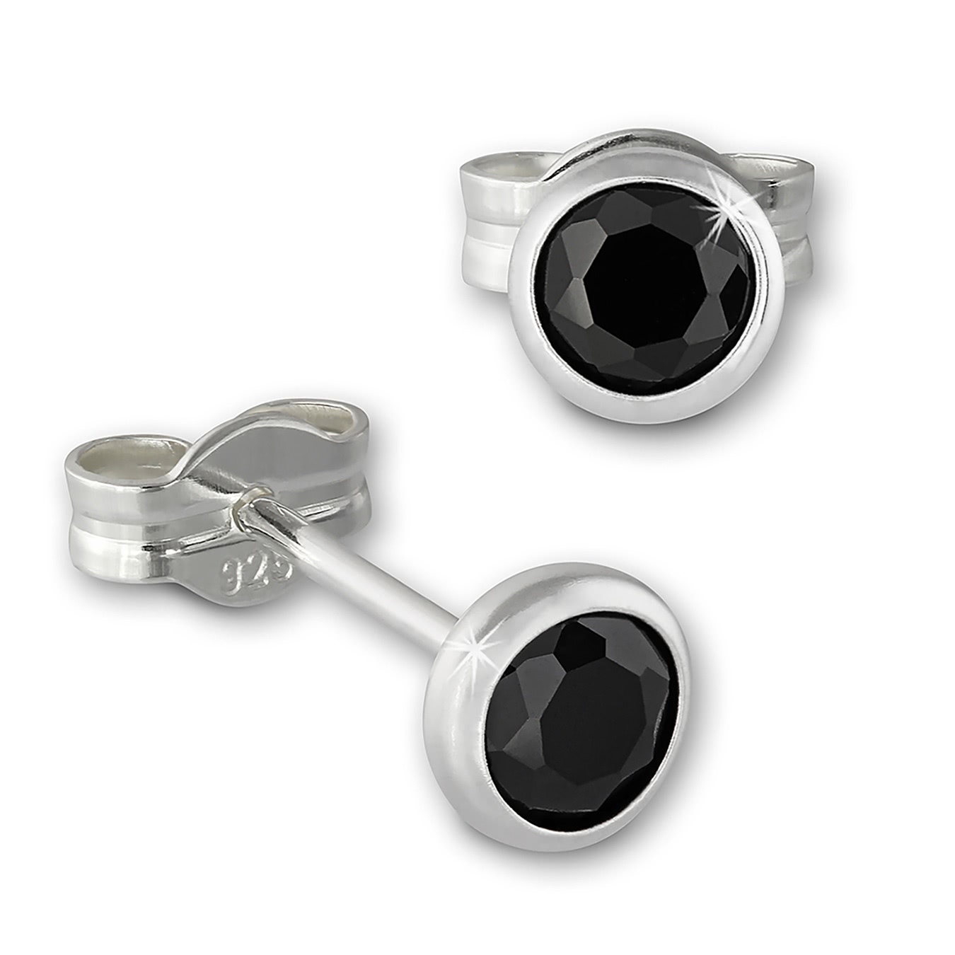 SilberDream Damen Ohrringe schwarz 4mm Ohrstecker Zirkonia 925 Silber SDO5534S