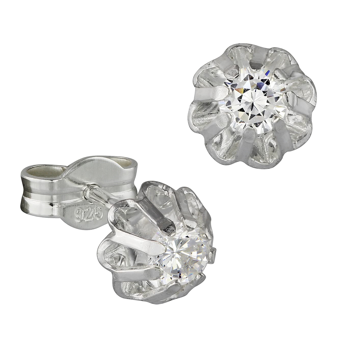 SilberDream Damen Ohrringe 7mm Ohrstecker Blümchen Zirkonia Silber SDO5903W