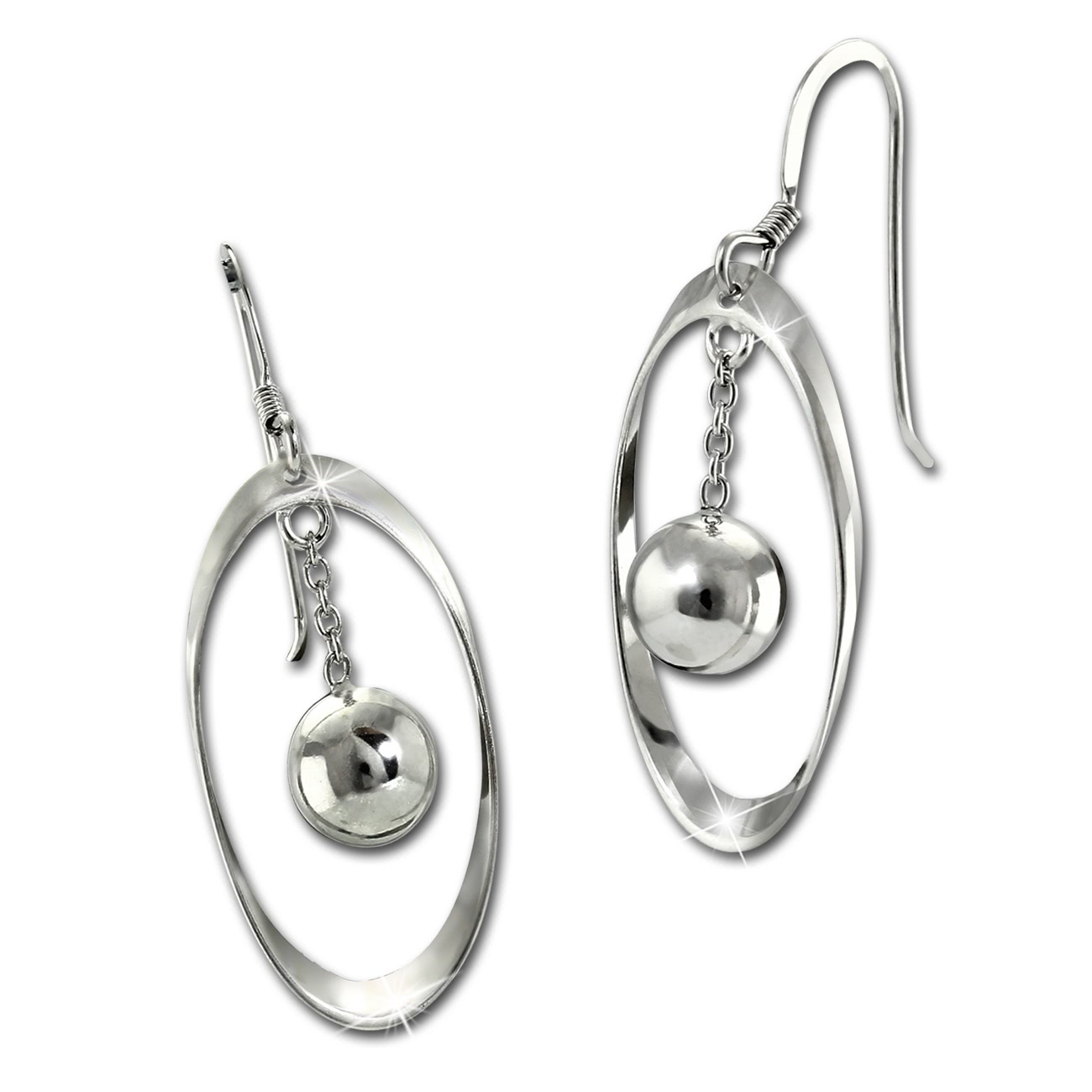 SilberDream Damen Ohrhänger Oval mit Kugel 925er ECHT Silber Ohrringe SDO6710J