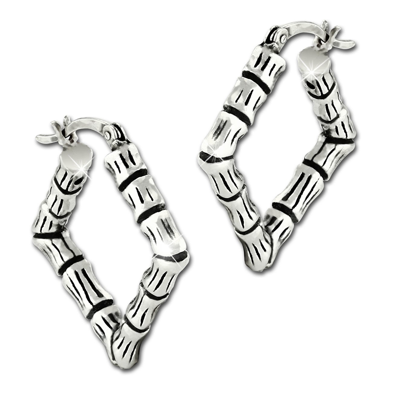 SilberDream Damen Creolen Bambus eckig 925er ECHT Silber Ohrringe SDO67202