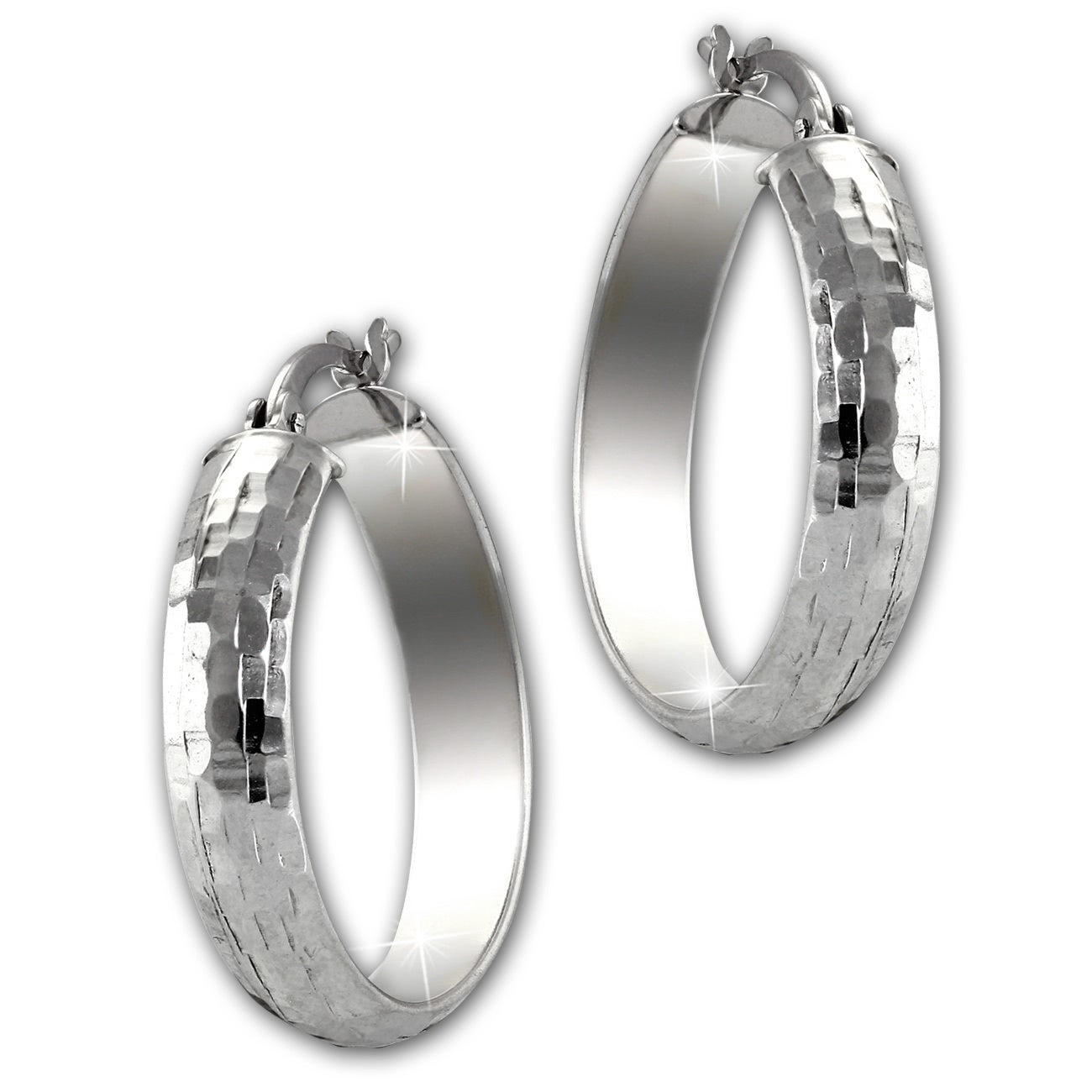 SilberDream Damen Creolen gehämmert 925er ECHT Silber Ohrringe Schmuck SDO67282