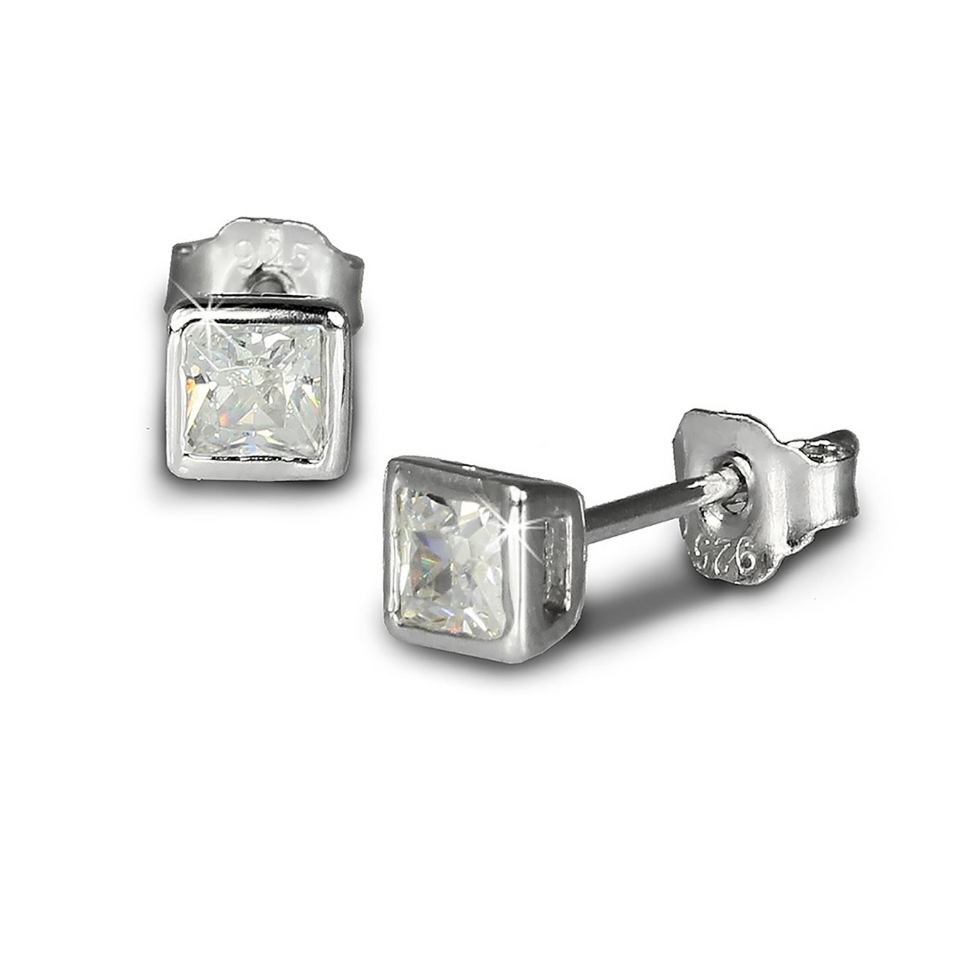 SilberDream Damen Ohrringe weiß 4mm Ohrstecker Quadrat Zirkonia Silber SDO704W