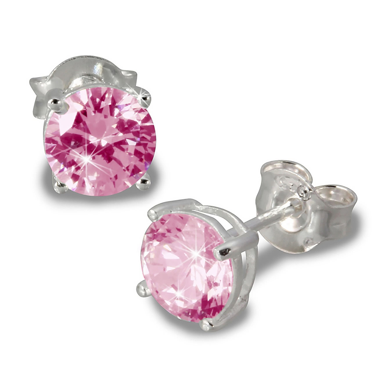 SilberDream Damen Ohrringe rosa 6mm Ohrstecker rund Zirkonia Silber SDO716A