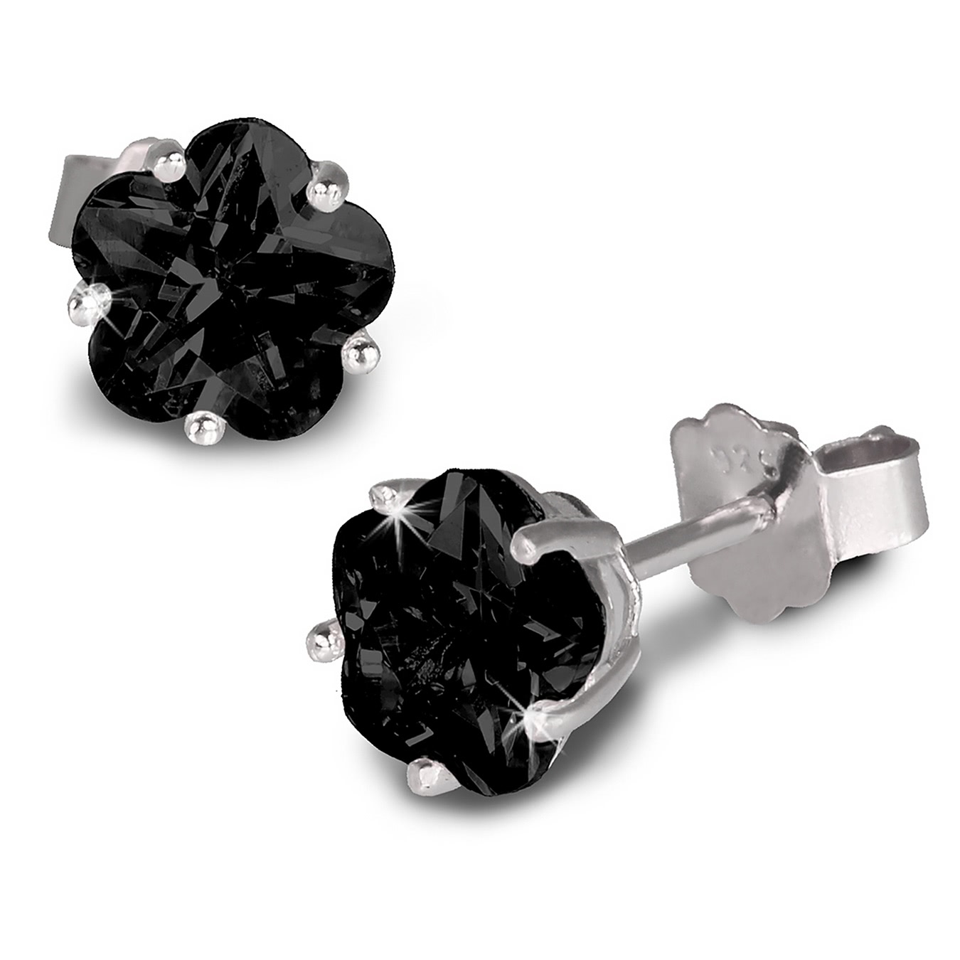 SilberDream Damen Ohrringe schwarz 6mm Stecker Blume Zirkonia Silber SDO736S