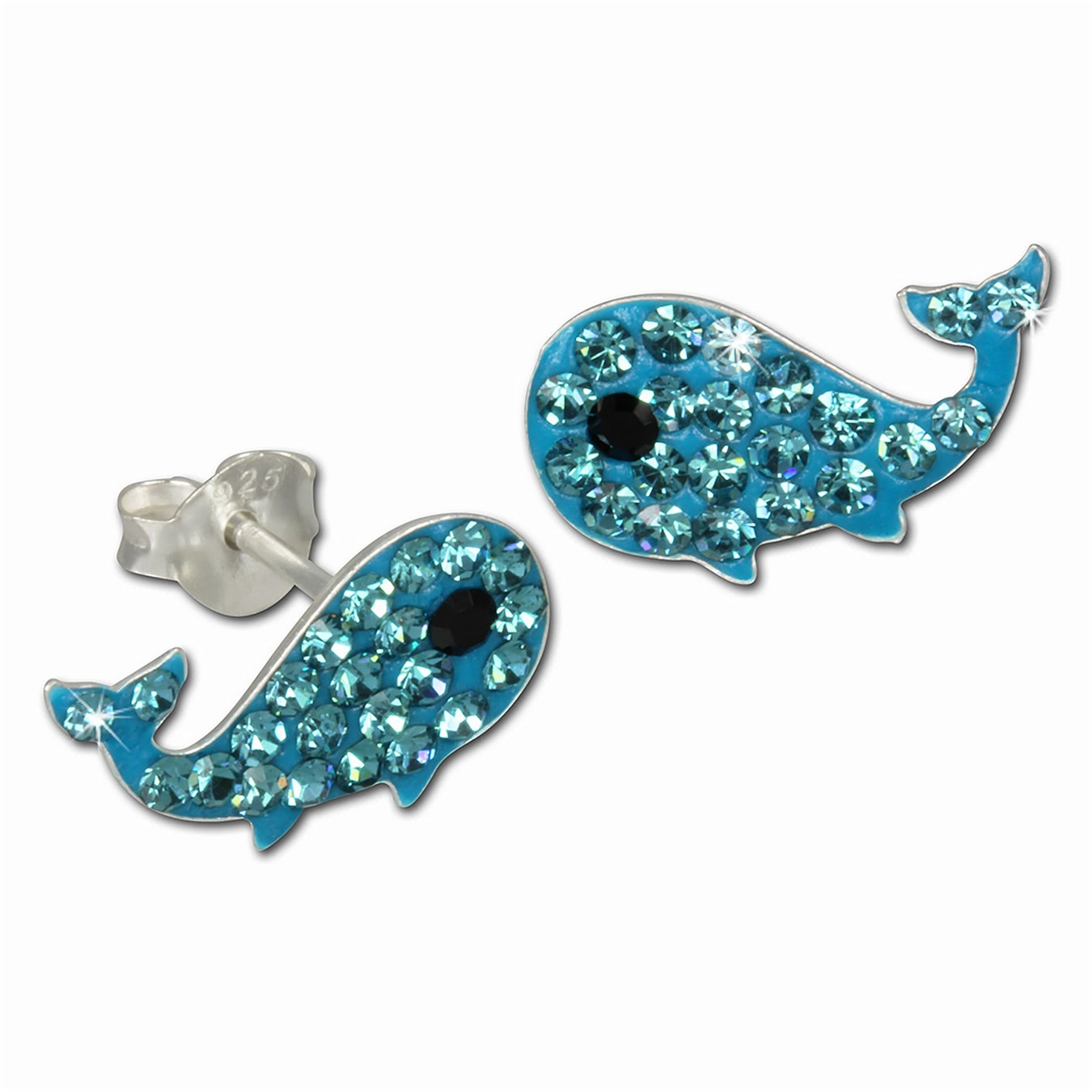 Teenie-Weenie Kinder Ohrringe blau Ohrstecker Wal 925er Echt Silber SDO8001H
