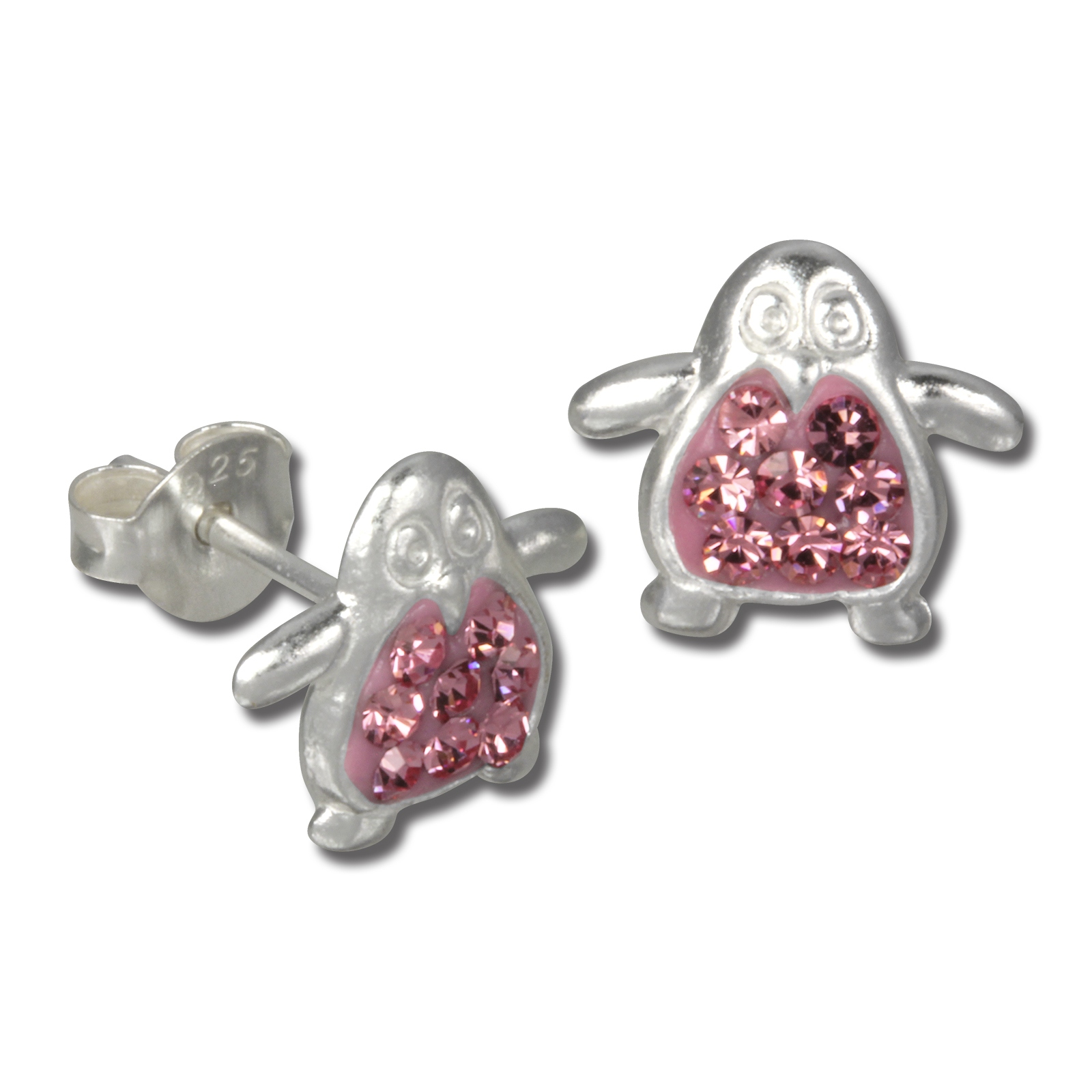 Teenie-Weenie Kinder Ohrringe rosa Ohrstecker Pinguin 925 Echt Silber SDO8004A
