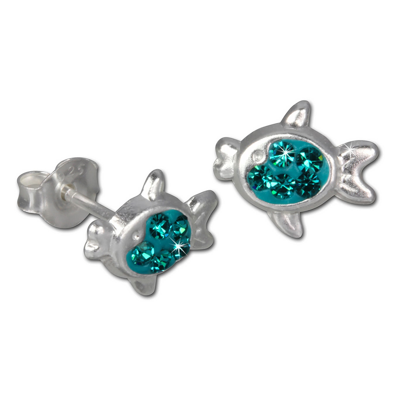 Teenie-Weenie Kinder Ohrringe türkis Ohrstecker Fisch 925 Echt Silber SDO8008T
