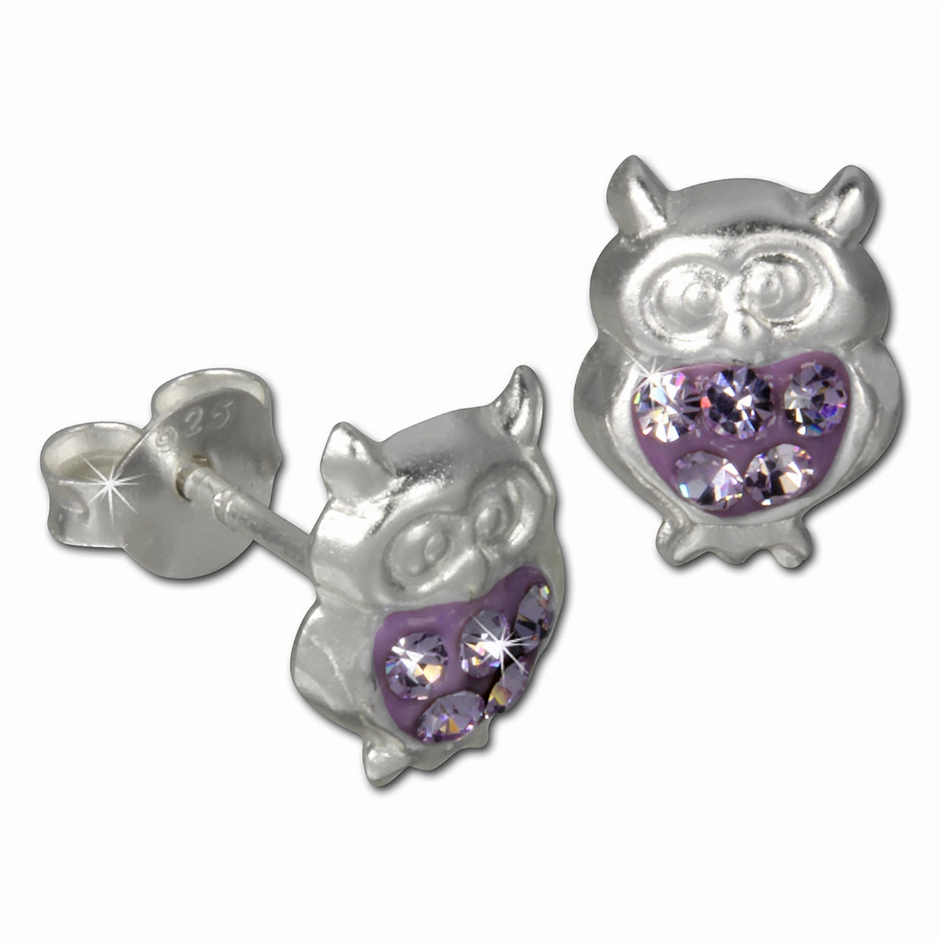 Teenie-Weenie Kinder Ohrringe lila Ohrstecker Eule 925er Echt Silber SDO8009V