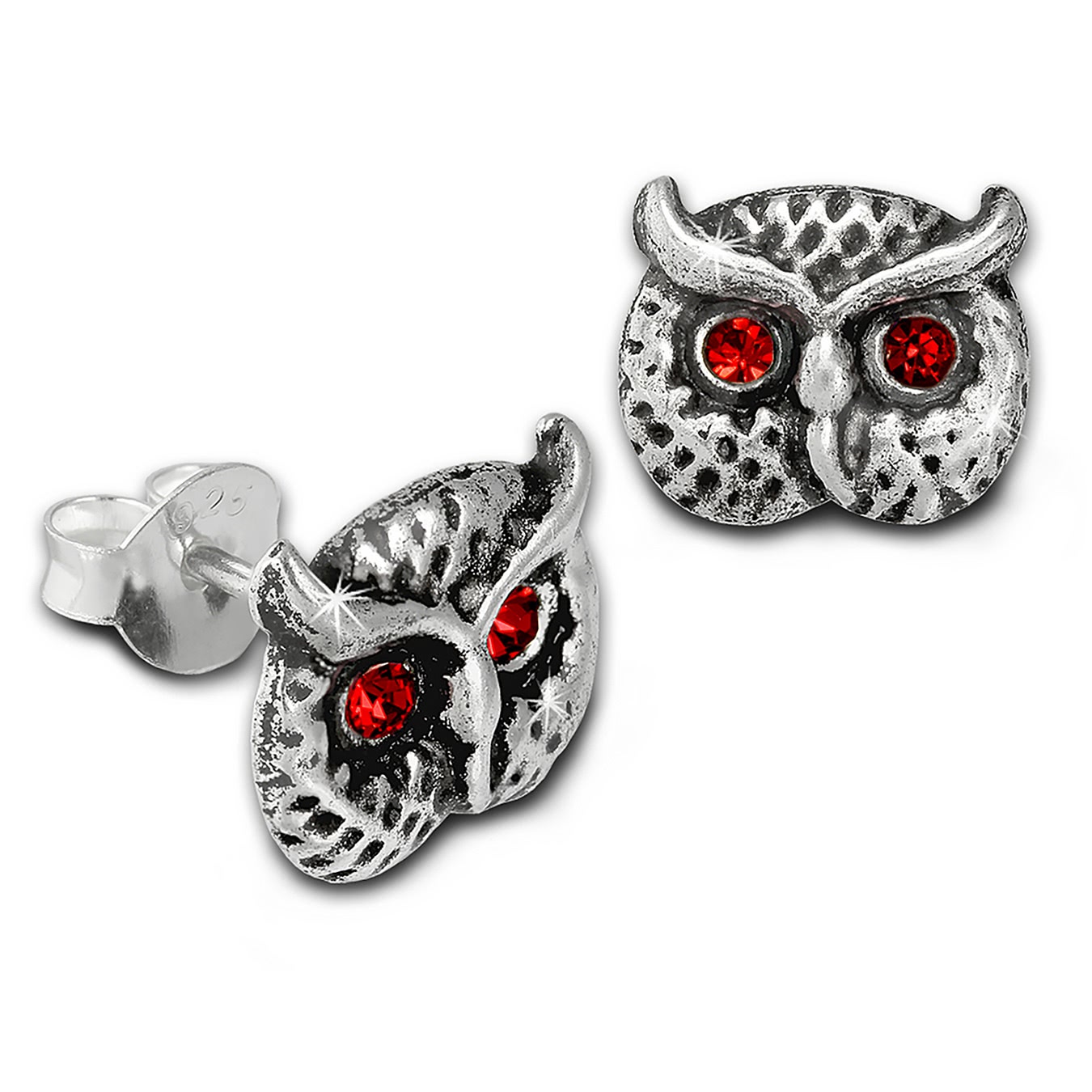 Teenie-Weenie Kinder Ohrringe rot Ohrstecker Eulenkopf 925 Echt Silber SDO8023R