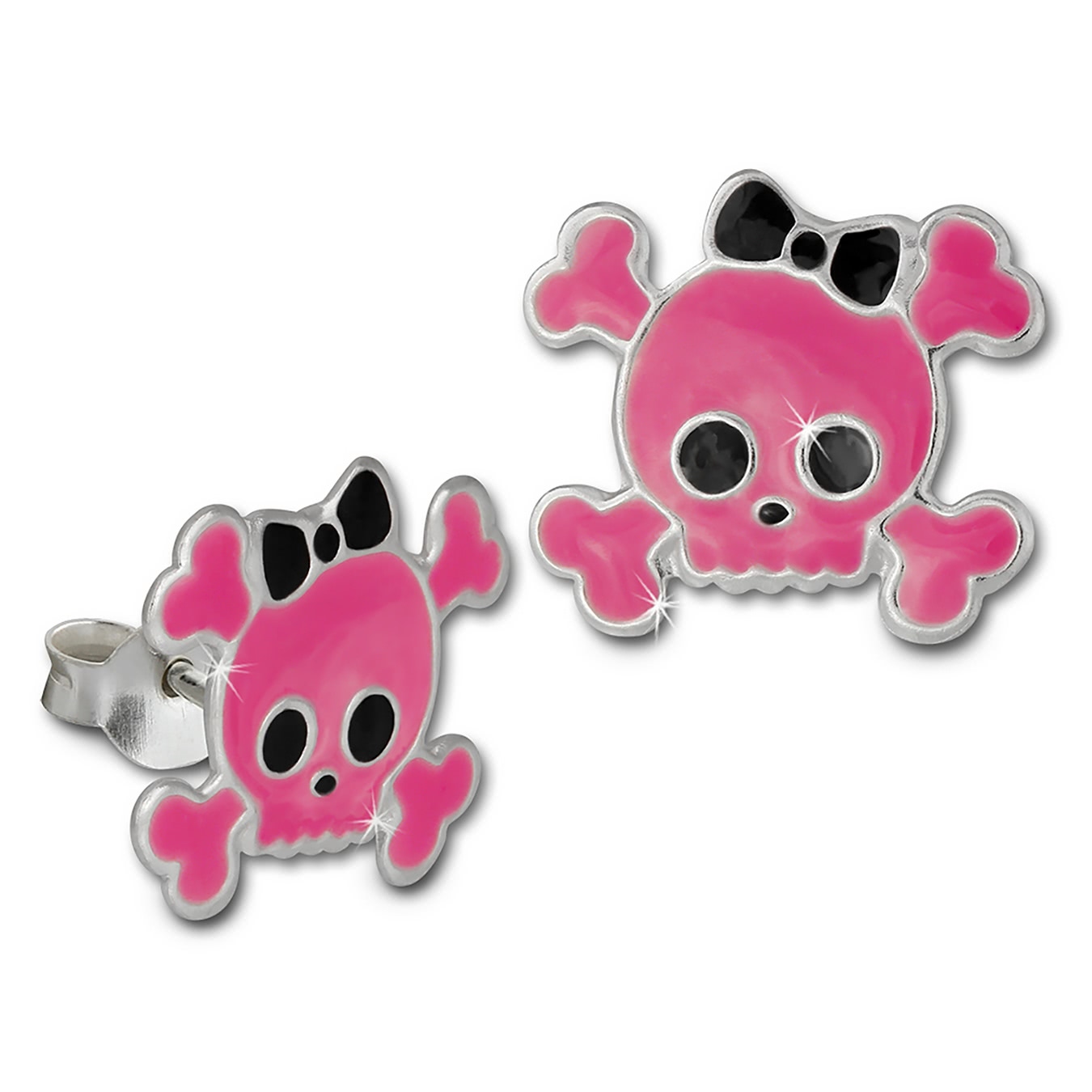 Artikelmerkmale: Teenie-Weenie Kinder Ohrringe Ohrstecker silber pink schwarz Totenkopf
