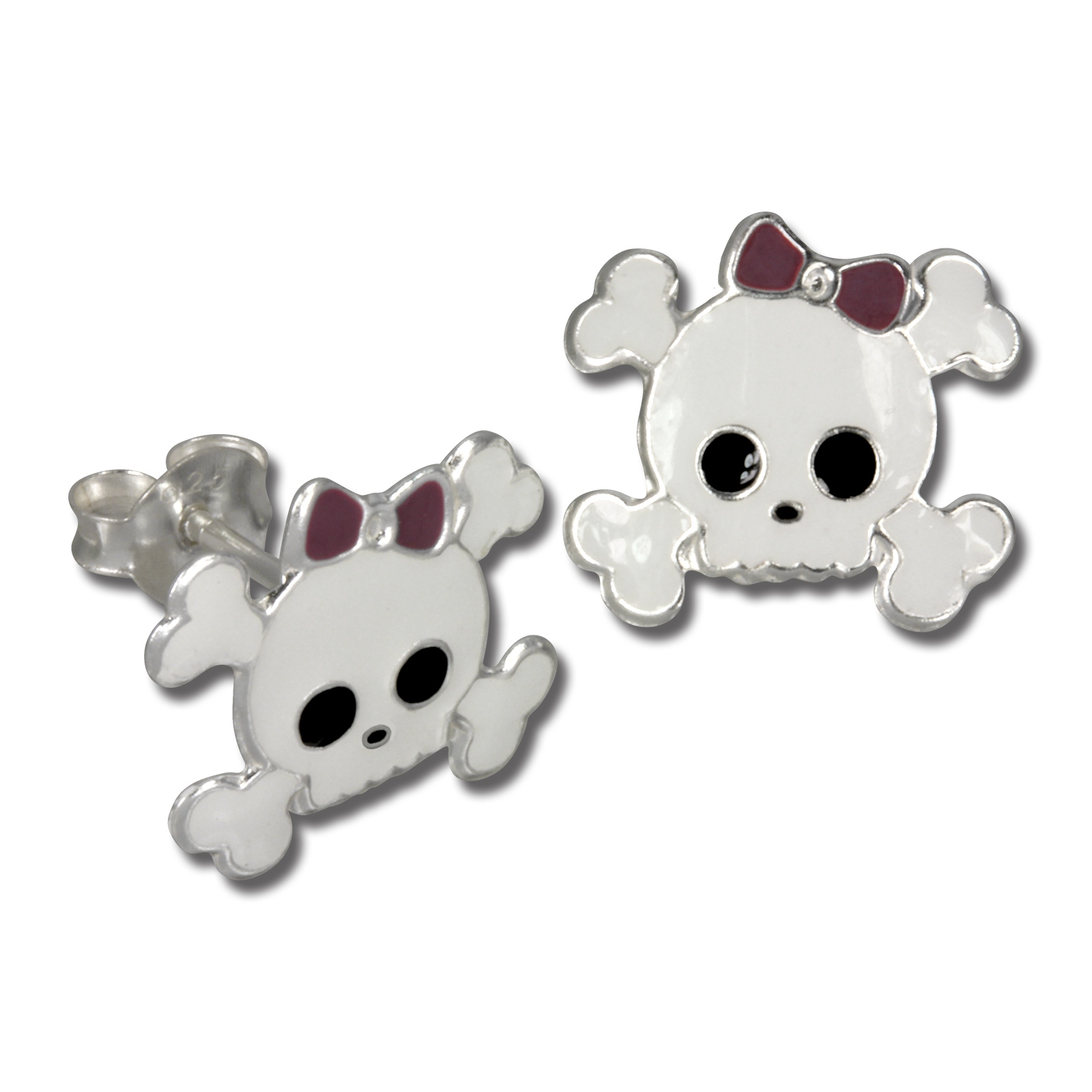 Artikelmerkmale: Teenie-Weenie Kinder Ohrringe Ohrstecker weißer schwarzer lila Emaille Lack Totenkopf