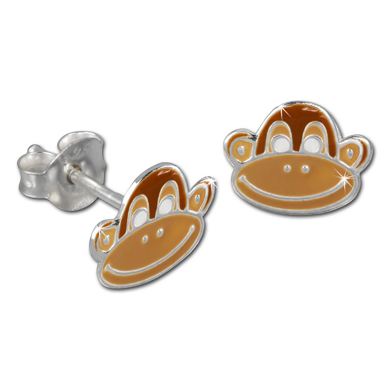 Teenie-Weenie Kinder Ohrringe braun Ohrstecker Affe 925er Echt Silber SDO8112N