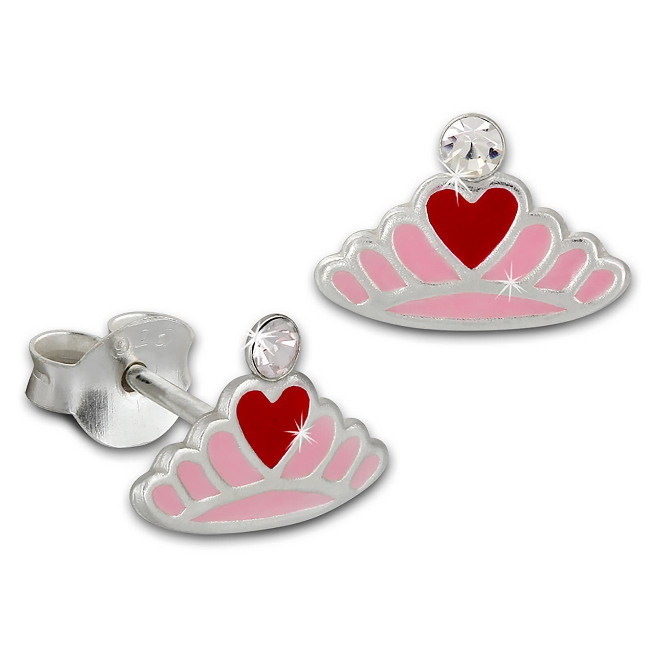 Teenie-Weenie Kinder Ohrringe rosa rot Ohrstecker Krone Herz Silber SDO8124A