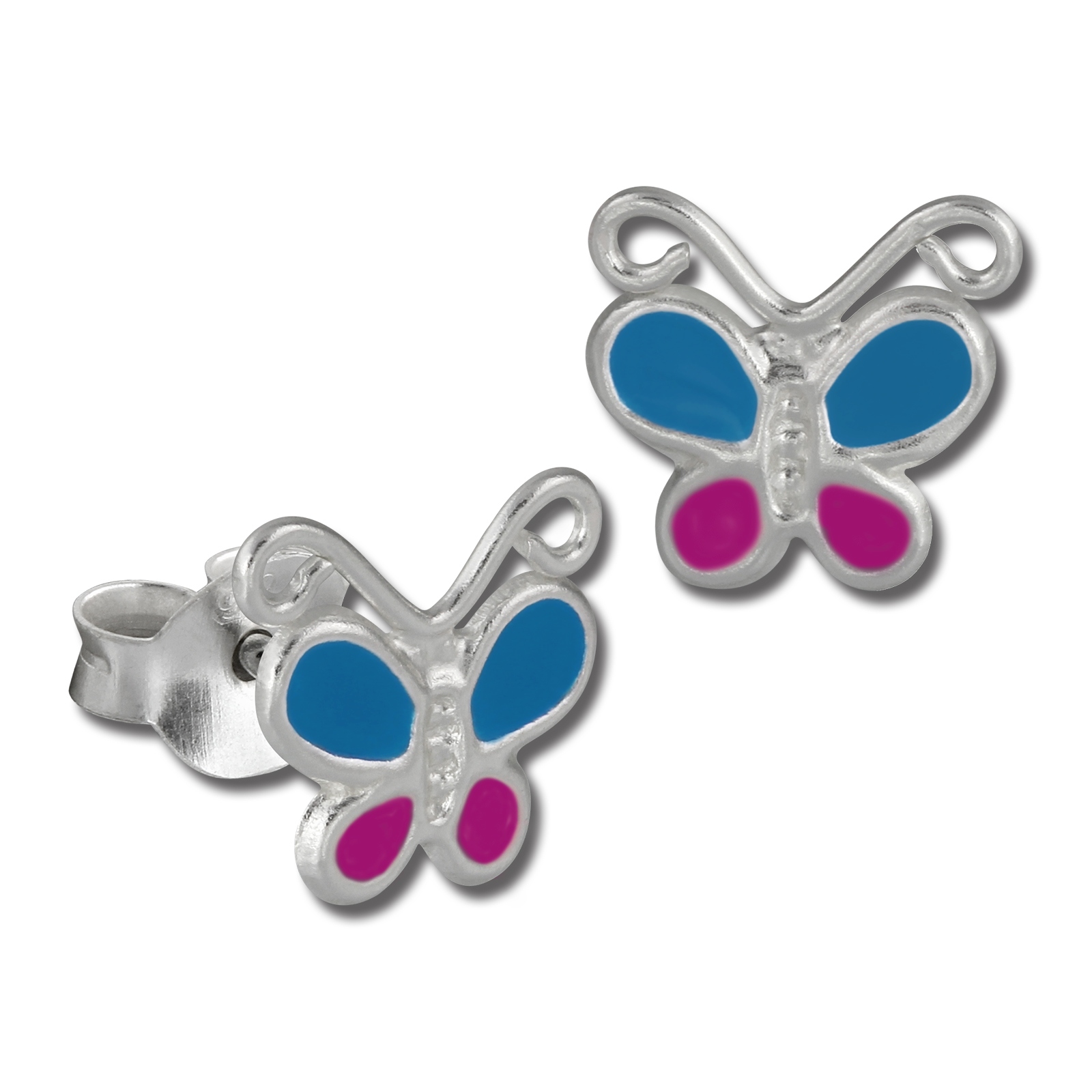 Teenie-Weenie Kinder Ohrringe blau rosa Stecker Schmetterling Silber SDO8127H