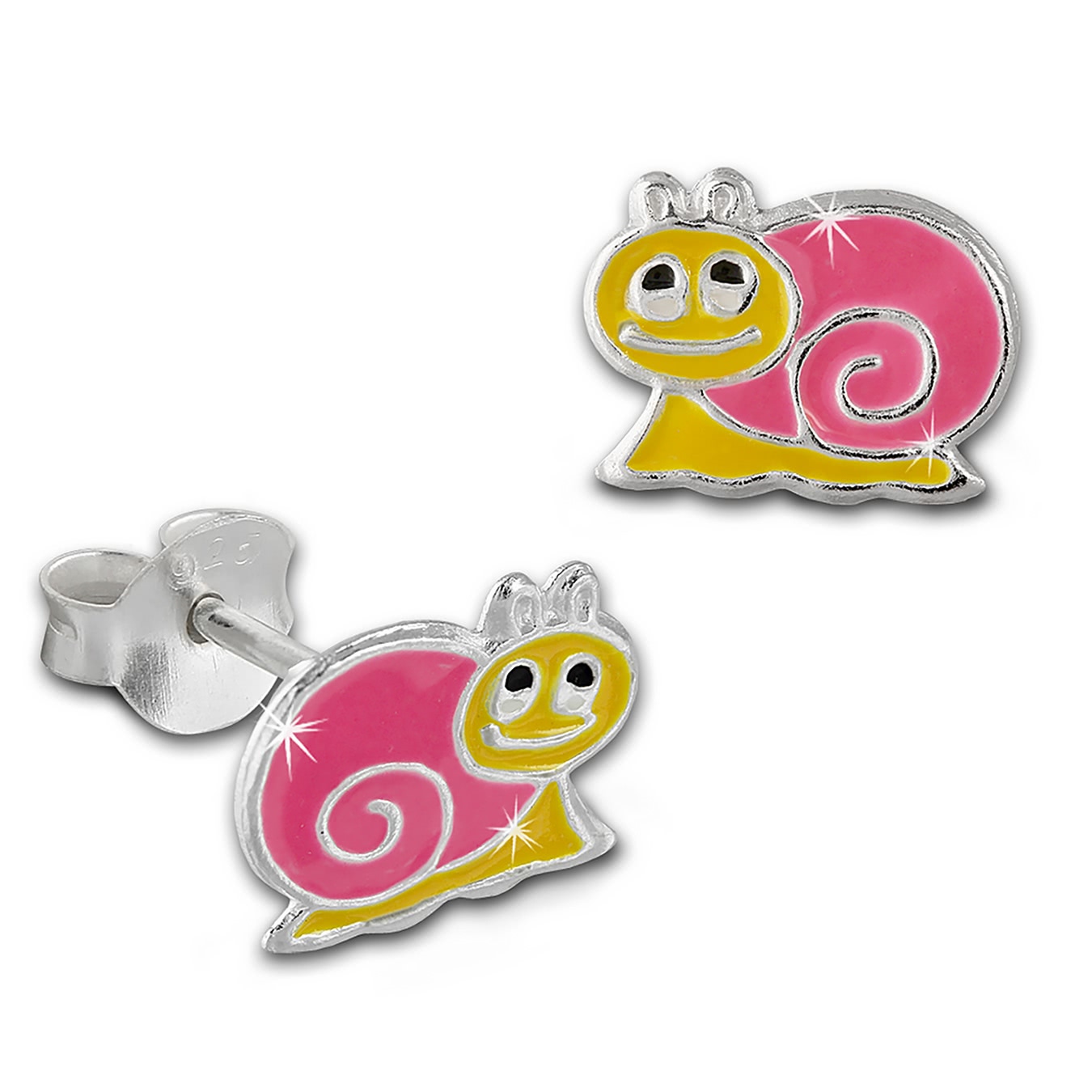 Teenie-Weenie Kinder Ohrringe pink gelb Ohrstecker Schnecke 925 Silber SDO8135P
