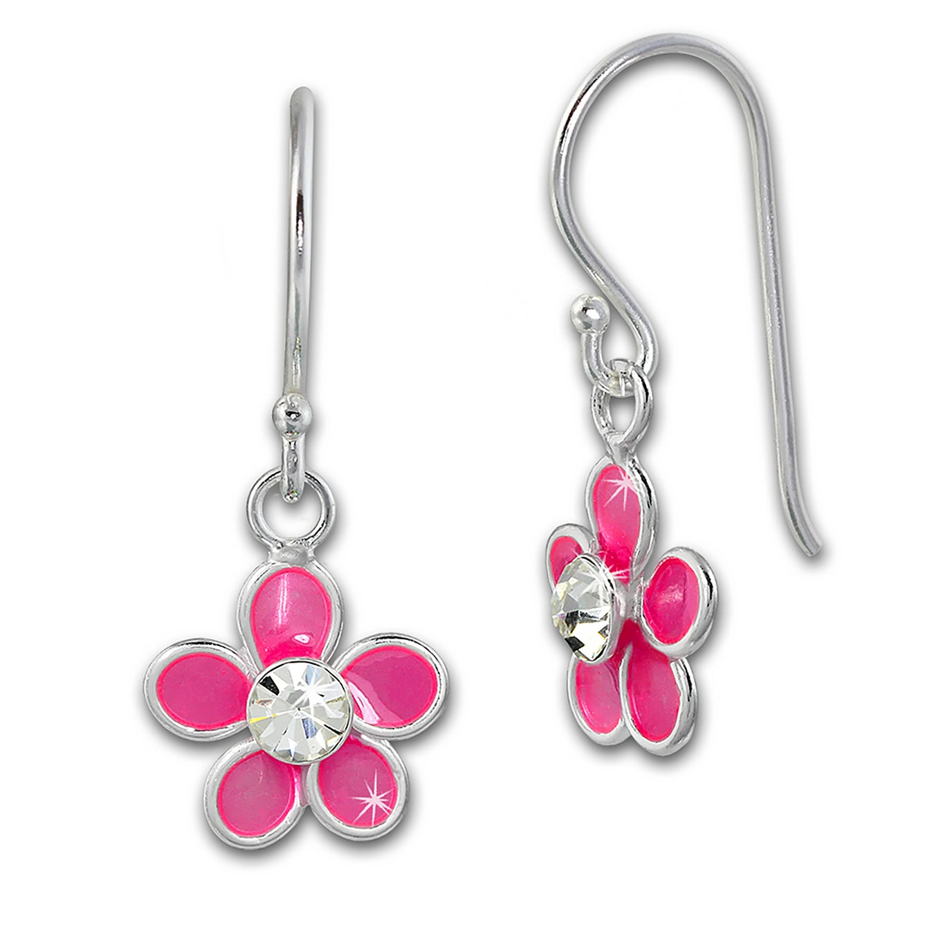 Teenie-Weenie Kinder Ohrringe pink Ohrhänger 3D Blume 925 Echt Silber SDO8139P