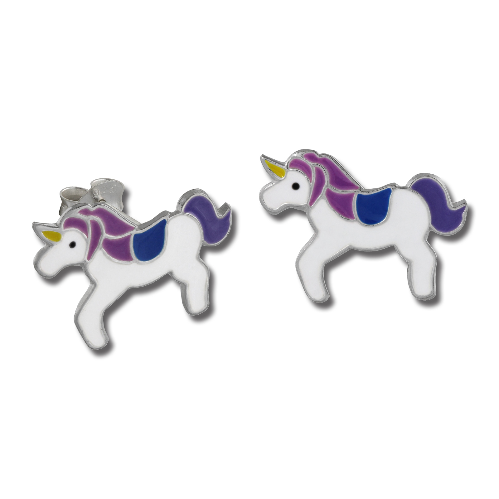 Artikelmerkmale: Teenie-Weenie Kinder Ohrringe Ohrstecker Emaille weiß lila rosa blau und gelb Einhorn