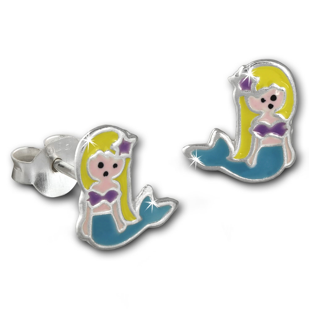 Teenie-Weenie Kinder Ohrringe bunt Stecker Kleine Meerjungfrau Silber SDO8145H