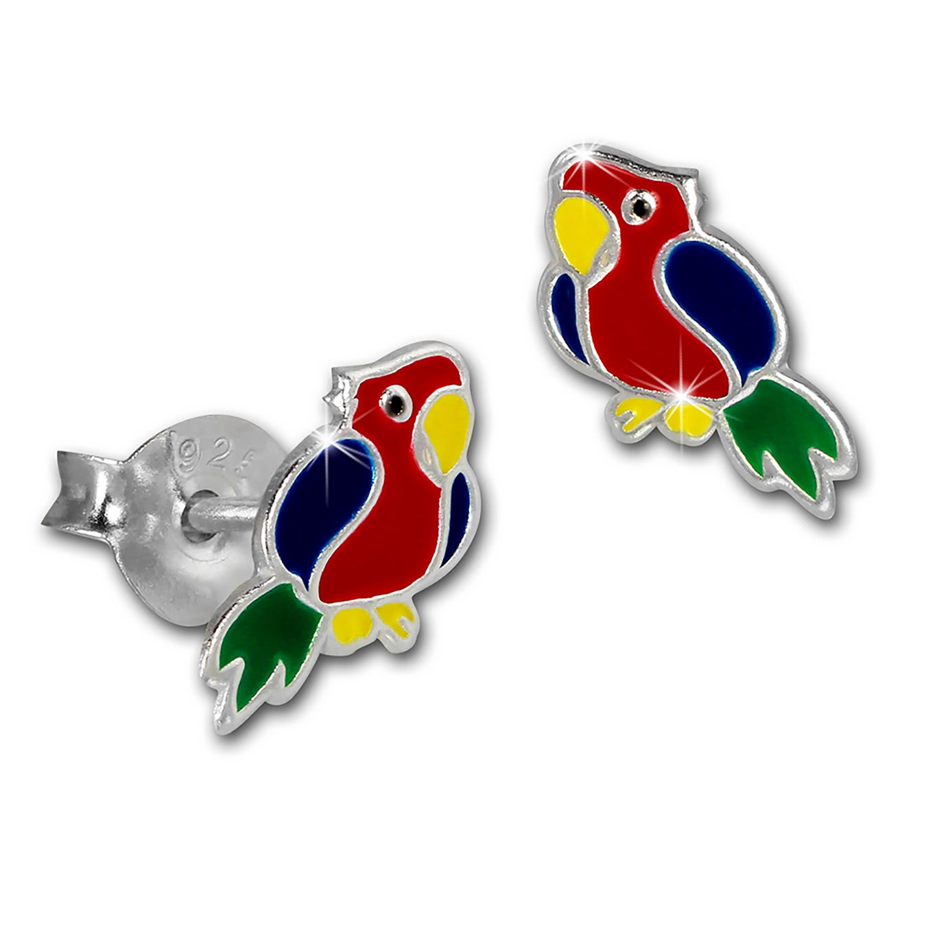 Teenie-Weenie Kinder Ohrringe bunt Ohrstecker Papagei 925 Echt Silber SDO8154R