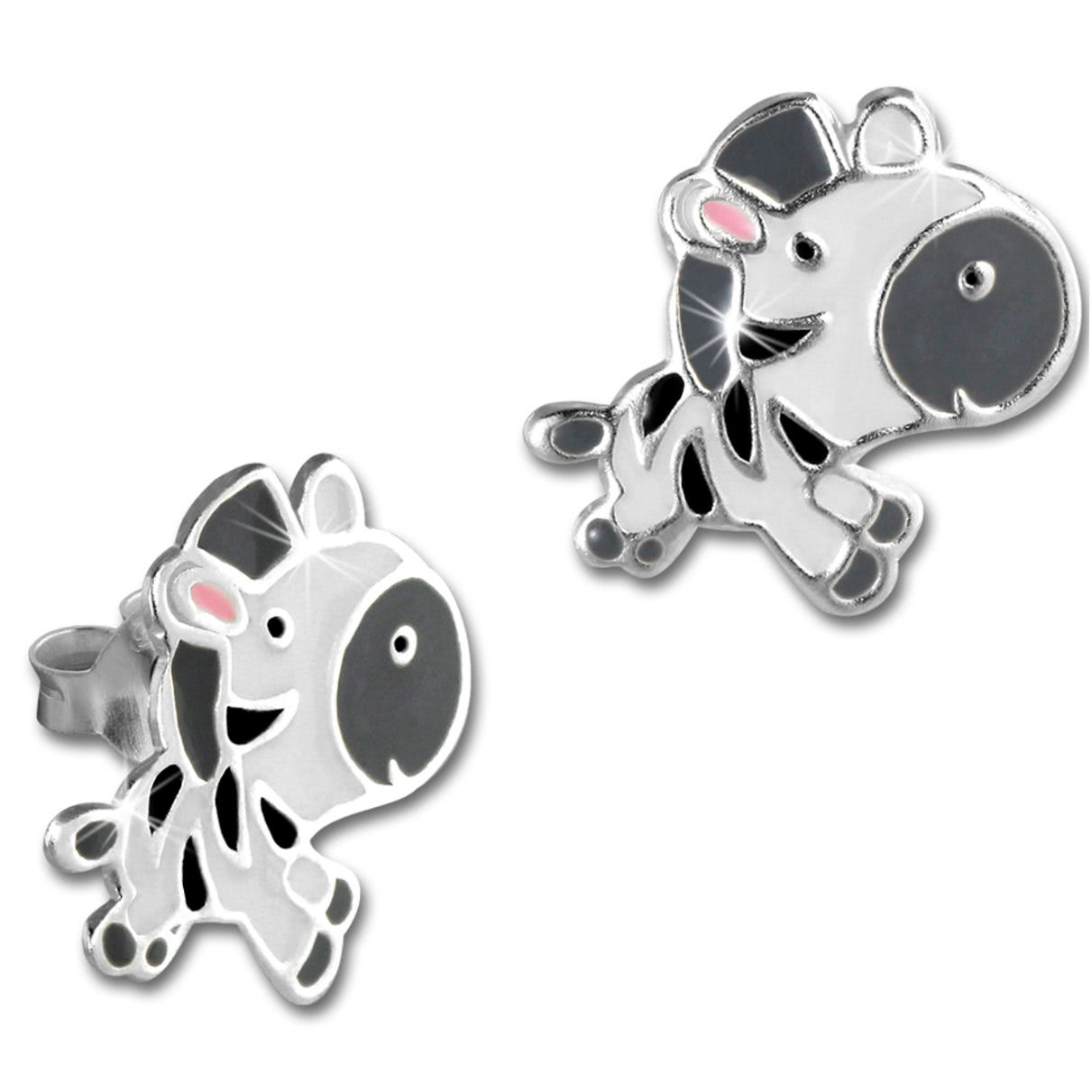 Kinder Ohrringe weiß grau Ohrstecker Zebra TW 925 Silber Schmuck SDO8158W
