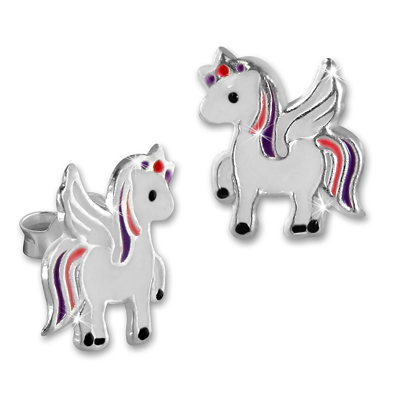 Kinder Ohrringe weiß pink Ohrstecker Pferd TW 925 Silber Schmuck SDO8160W