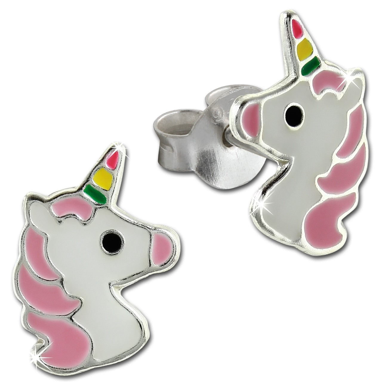 Teenie-Weenie Kinder Ohrstecker rosa Einhorn Kopf 925 Silber Ohrringe SDO8165W