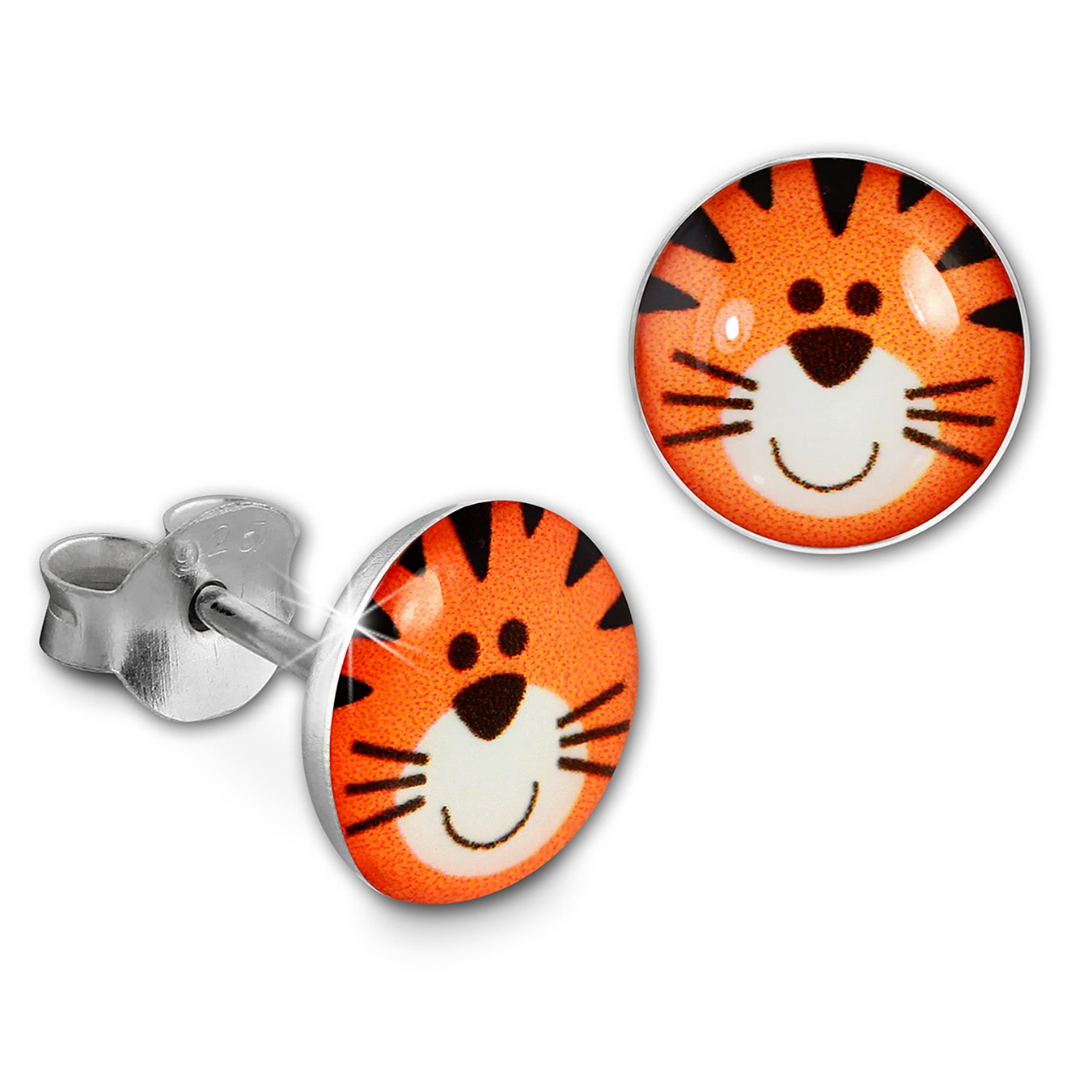 SilberDream Kinder Damen Ohrringe orange 8mm Ohrstecker Tiger Silber SDO85138