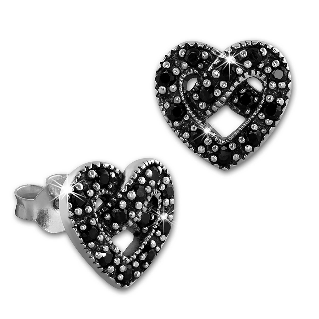 Artikelmerkmale: SilberDream Damen Ohrringe Ohrstecker schwarz verschlungenes Herz